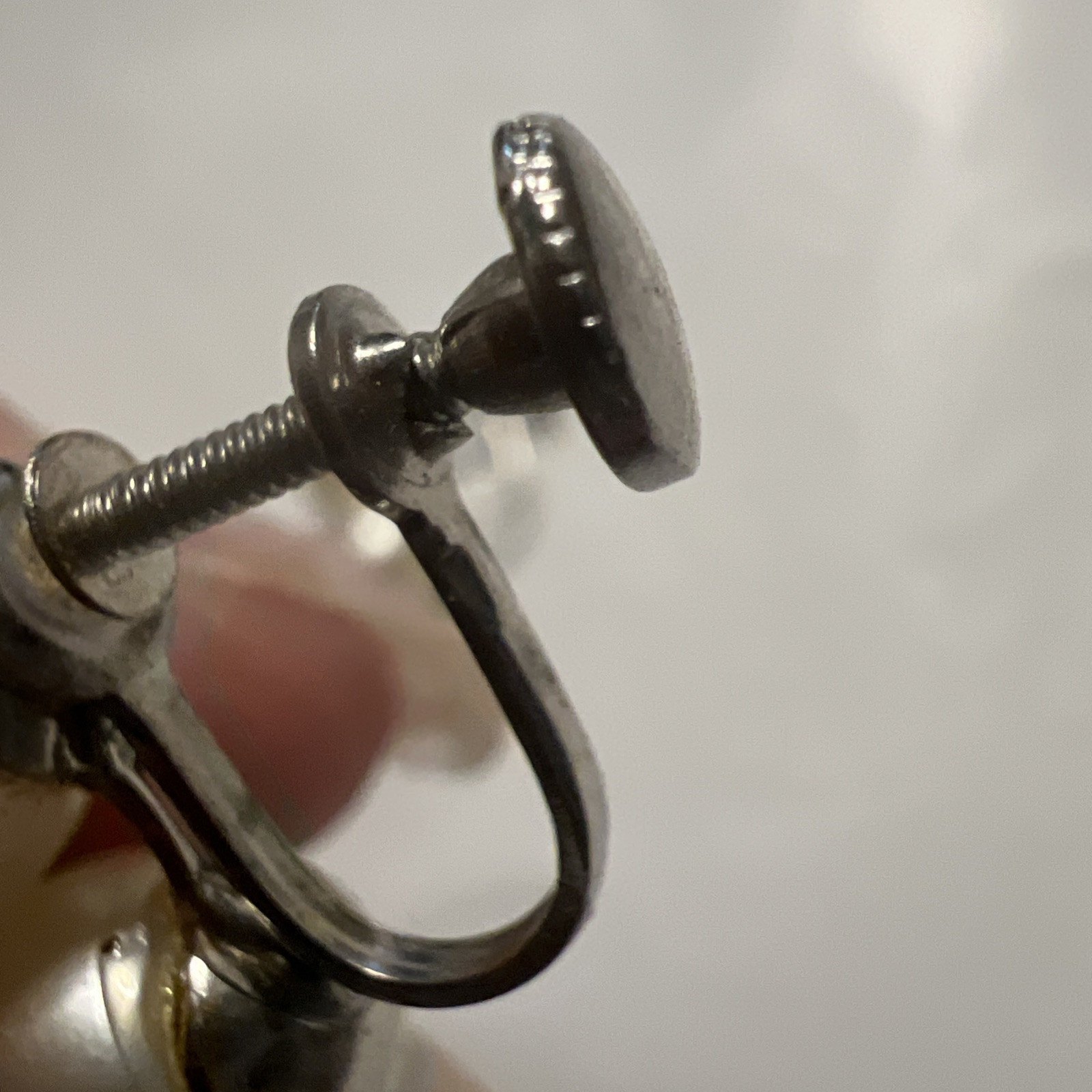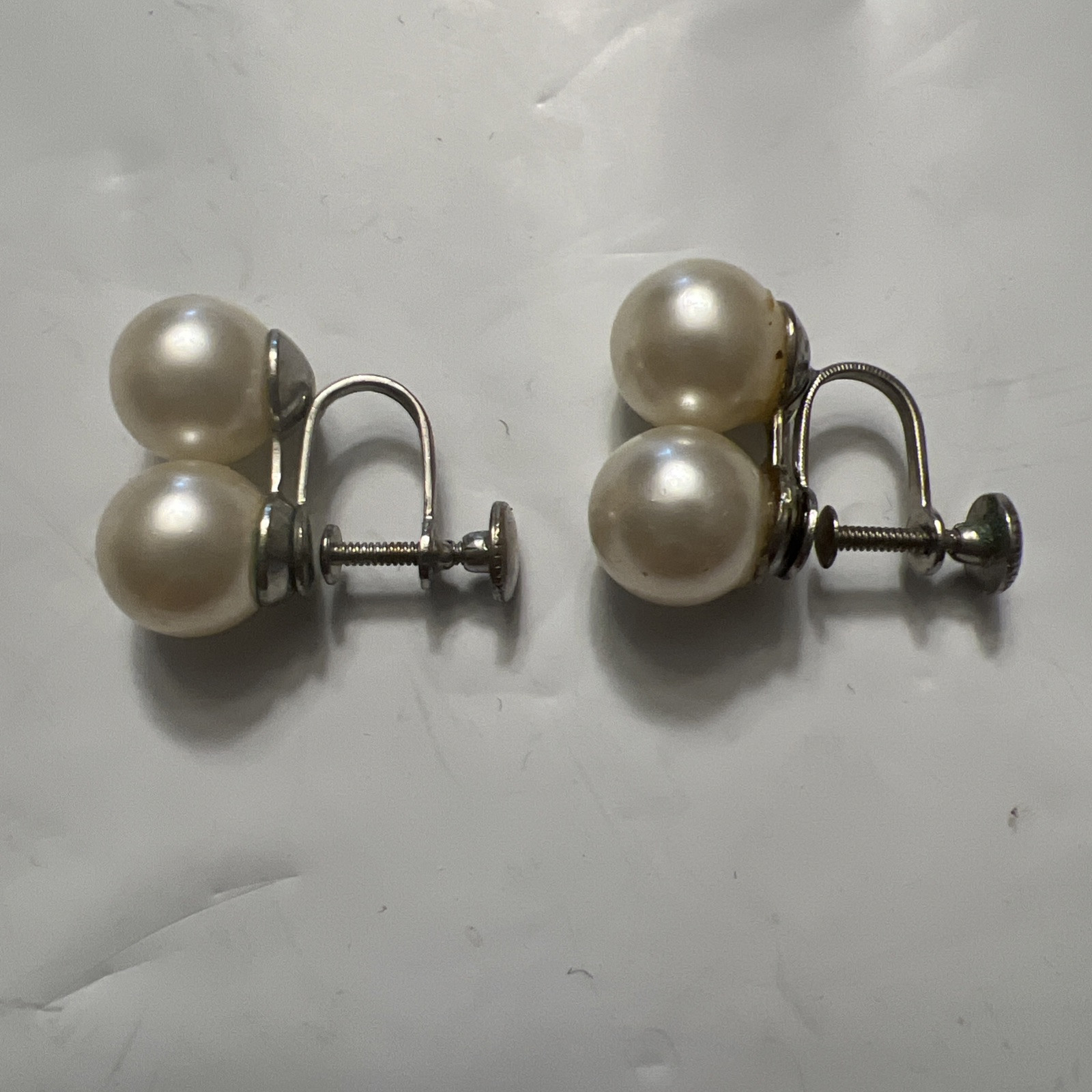 Large Faux Pearl Silver Earrings Screw Back Mid Century