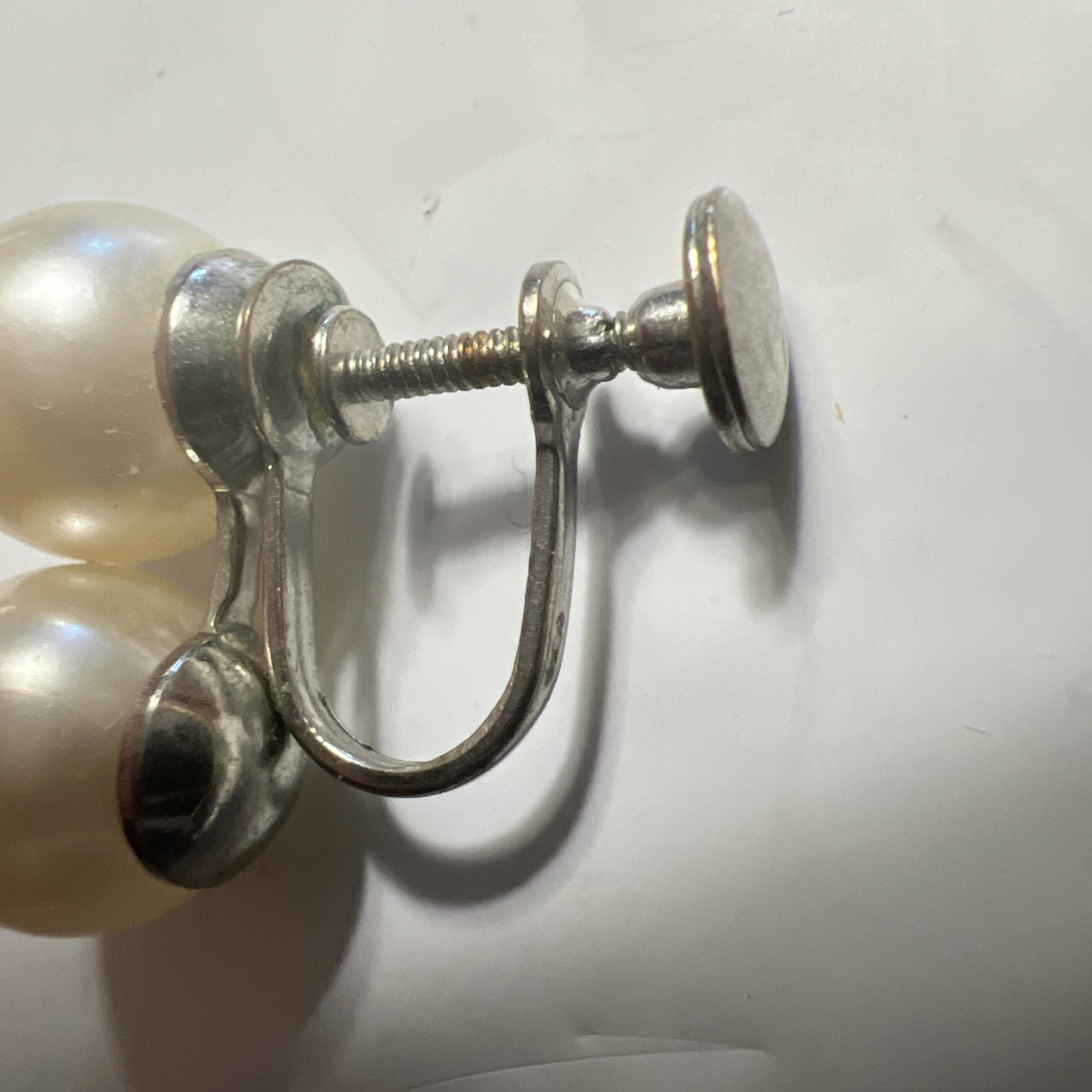 Large Faux Pearl Silver Earrings Screw Back and 14 similar items