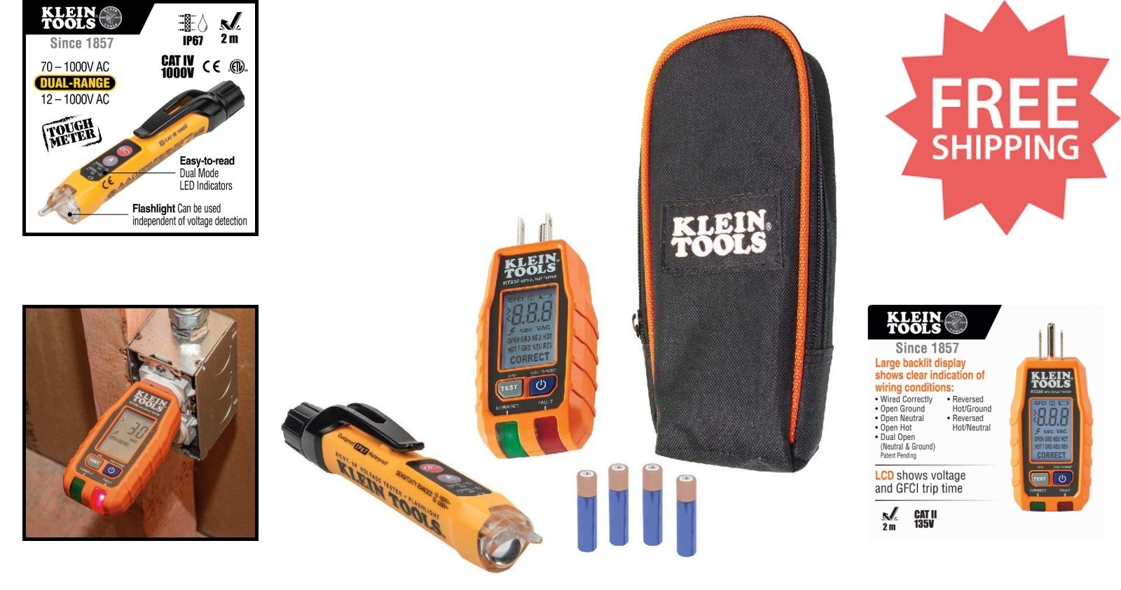 Upgrade your electrical testing toolkit with the Klein Tools Electrical Kit, designed for safety, precision, and convenience. The kit features the RT250 GFCI Receptacle Tester with a large backlit LCD for quick voltage readings and wiring condition checks, including innovative detection of Open Neutral and Open Ground faults. The LCD also displays trip times for GFCI devices, aiding in swift troubleshooting. The dual-range NCVT3P Non-Contact Voltage Tester detects voltages from 12 to 1000V AC, with an independent flashlight for illumination in dark workspaces. Complete with a carrying case, detailed instructions, and batteries, this versatile kit ensures reliable performance for various electrical tasks. Perfect for professional electricians and serious DIY enthusiasts alike. To ensure fast and reliable delivery, we work with multiple fulfillment partners and suppliers. Depending on availability and location, your order may ship from different warehouses or arrive in packaging that varies from item to item. Tracking details are typically provided shortly after shipment, and customer satisfaction remains our top priority. Please note that due to carrier policies and regional regulations, certain items may not be eligible for delivery to specific states or territories.