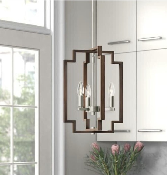 Maxax Modern Geometric Pendant Chandelier – 3-Light Metal Fixture (NEW in Box)