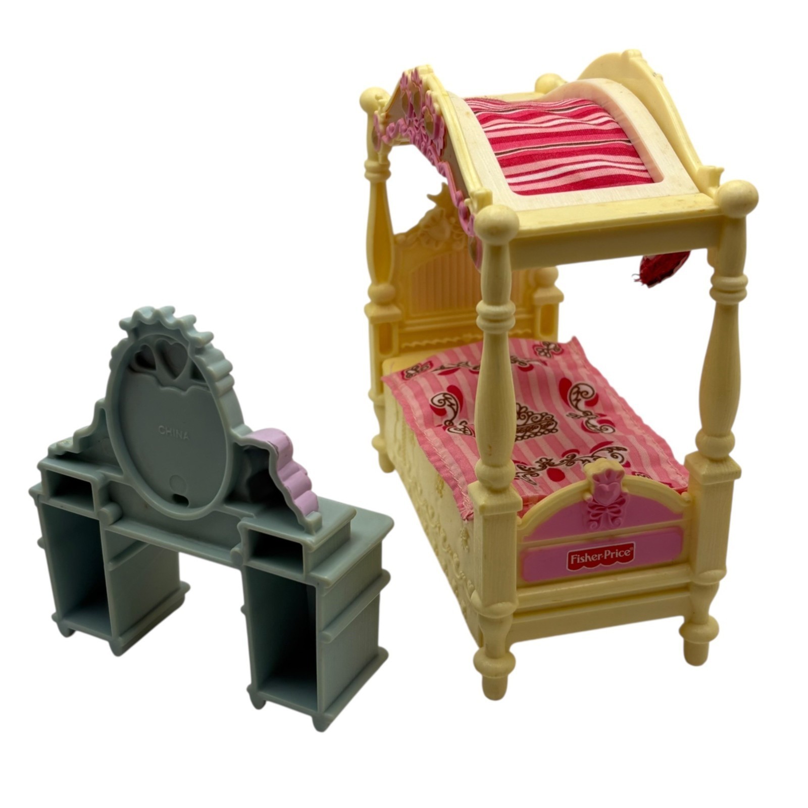 Fisher-Price Loving Family Dollhouse Bedroom Furniture Canopy Bed & Vanity