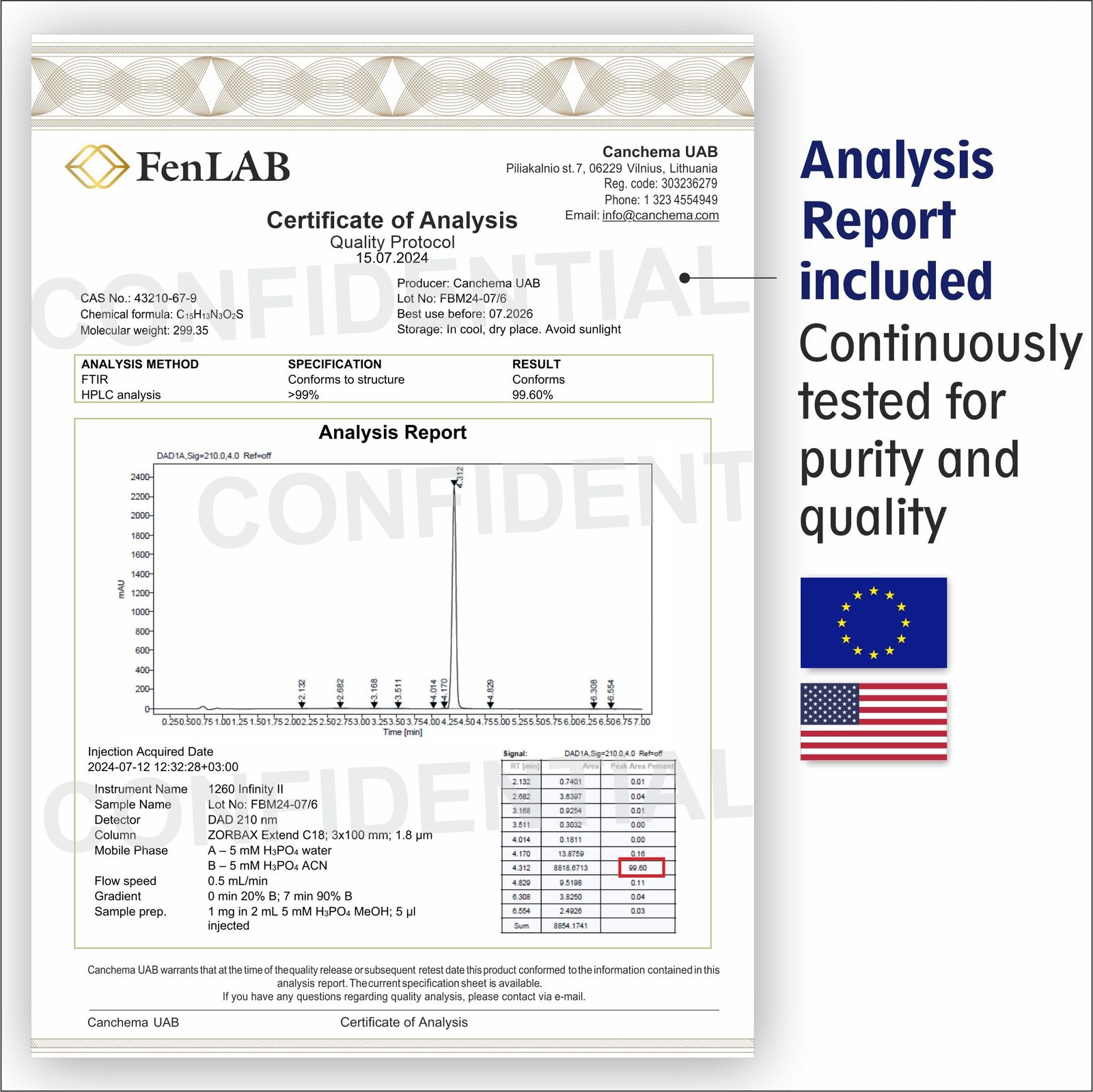 Premium grade 99% Pure: Trustful and undeniable purity results. Analysis Report included inside each FenLAB product.