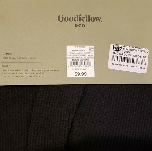 Goodfellow & Co™ Men's Size Medium Black Cotton Blend Thermal Pants, NEW