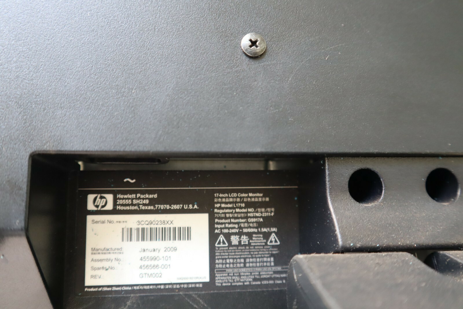 HP L1710 LCD Monitor with Stand, VGA cable & Power Cord are included