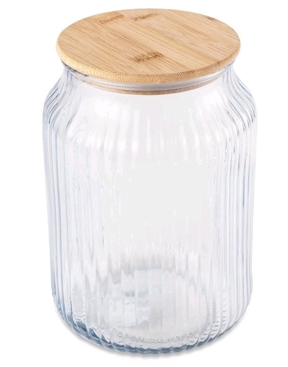 Thyme & Table ~ 116 Ounce ~ Ribbed Glass Jar ~ Canister w/Lid ~ 6.3 in x 9" Tall