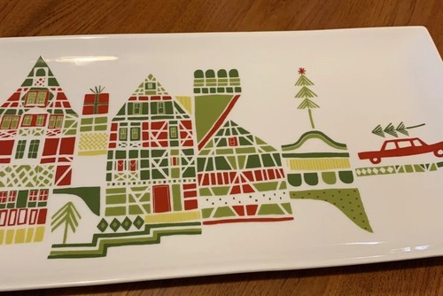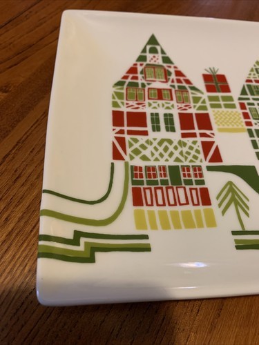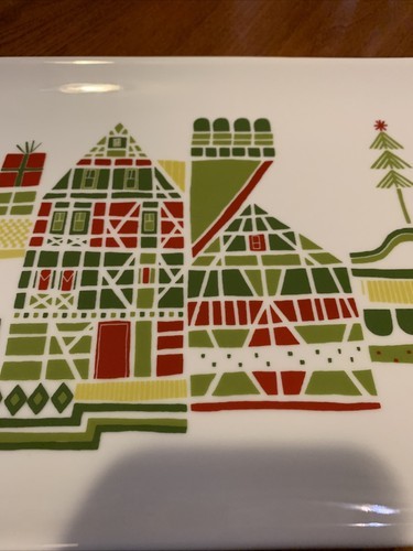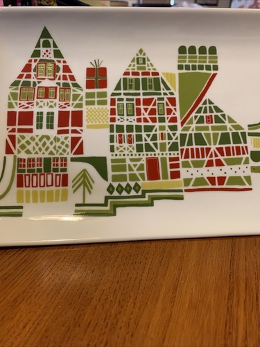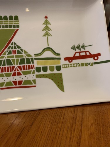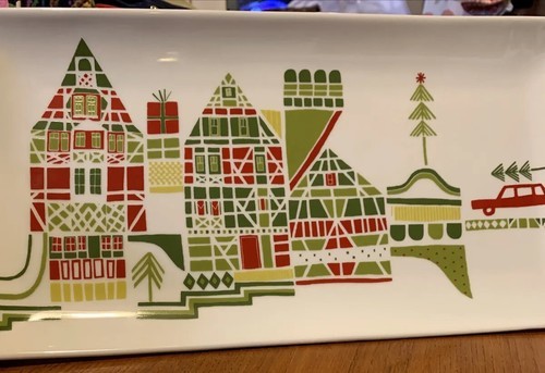 CRATE & BARREL Serving Platter YULE TOWN CHRISTMAS by Julia Rothman/ Preowned