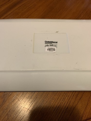 This preowned Crate Barrel serving platter features a festive Yule Town Christmas design by Julia Rothman. Made of white ceramic, this platter is perfect for holiday gatherings and Christmas table decor. The intricate design adds a touch of whimsy to your seasonal celebrations, making it a charming addition to your festive table setting.