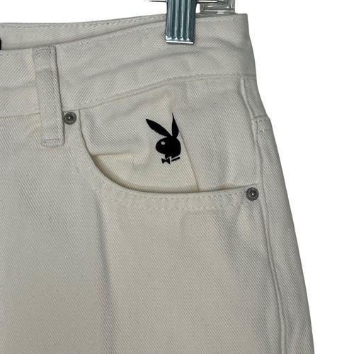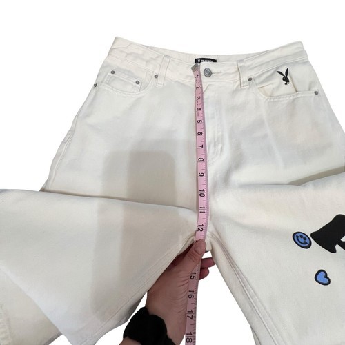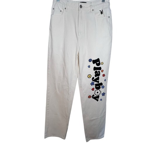 Playboy By PacSun Flower Boyfriend Jeans White Women 28 Distressed Straight Leg