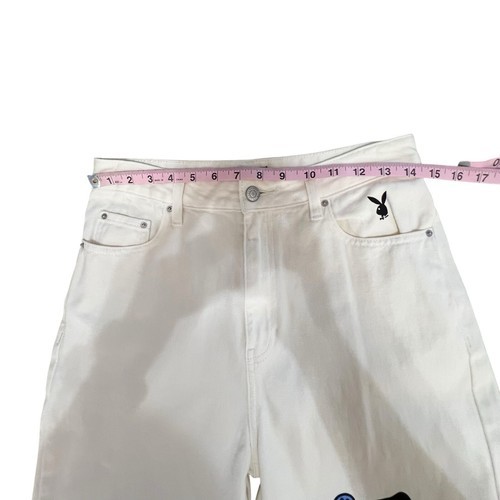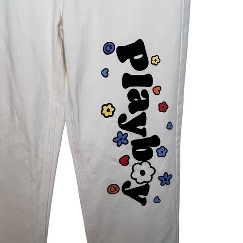 Get ready to rock the bohemian look with these Playboy By PacSun Flower Boyfriend Jeans in white. These jeans are perfect for any festival or rock-themed event. The 5-pocket design with a zip and button closure and adjustable waist will ensure you have a comfortable fit all day long.