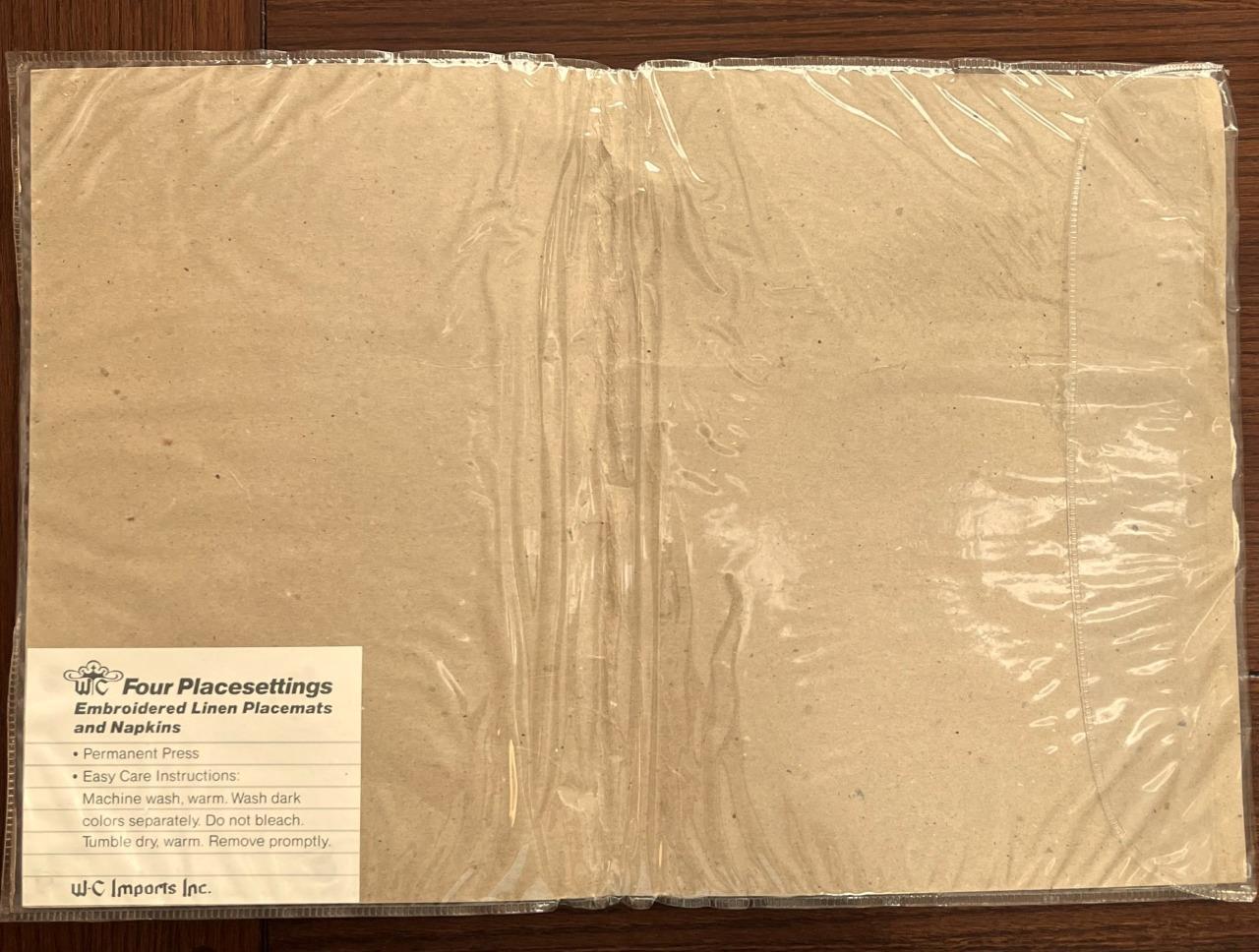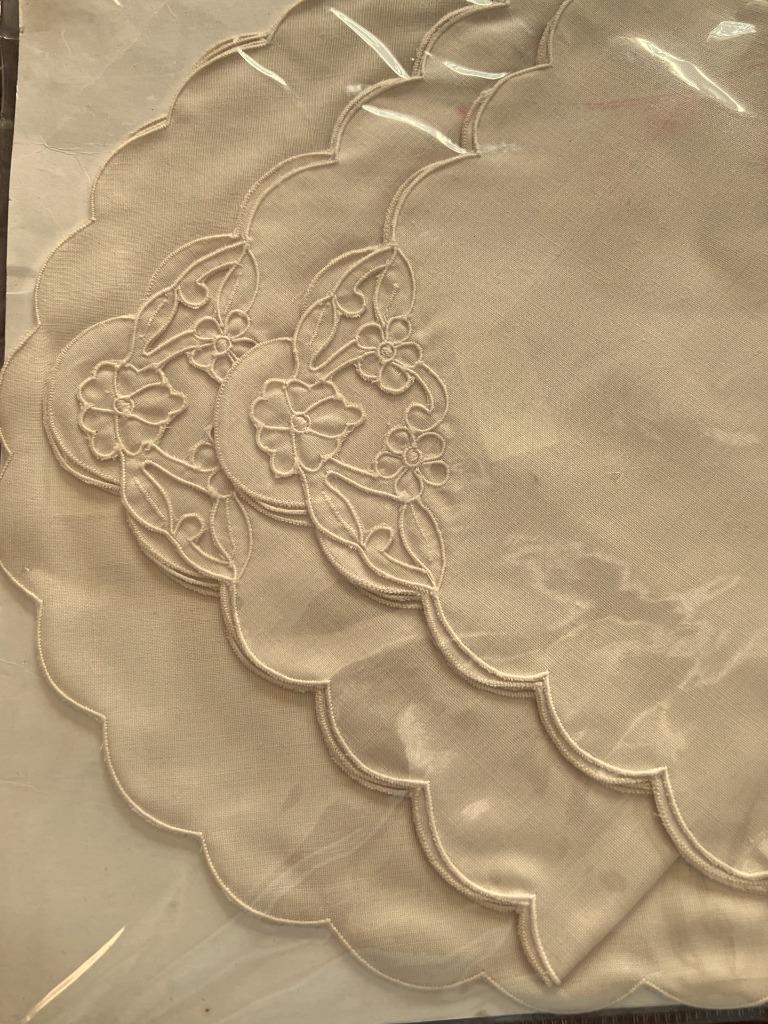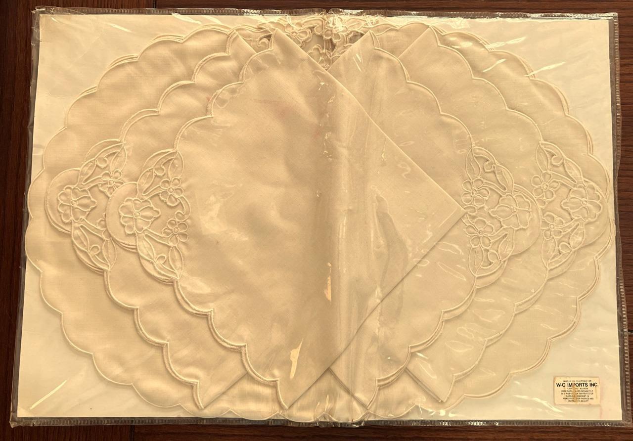 Vintage WC Imports 4 Beige Linen Embroidered Placemats & 4 Linen Napkins NOS