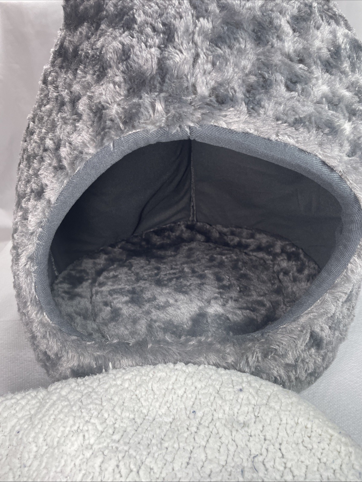 The Cat House Indoor Bed with Removable Foam Cushion by PETMAKER is a modern and cozy pet tent designed for cats and small dogs. This pyramid cat bed includes a removable foam cushion for added comfort, making it perfect for all life stages. With a gray color and durable polyester construction, this indoor bed is a stylish and practical option for pets needing a safe and comfortable space to rest.