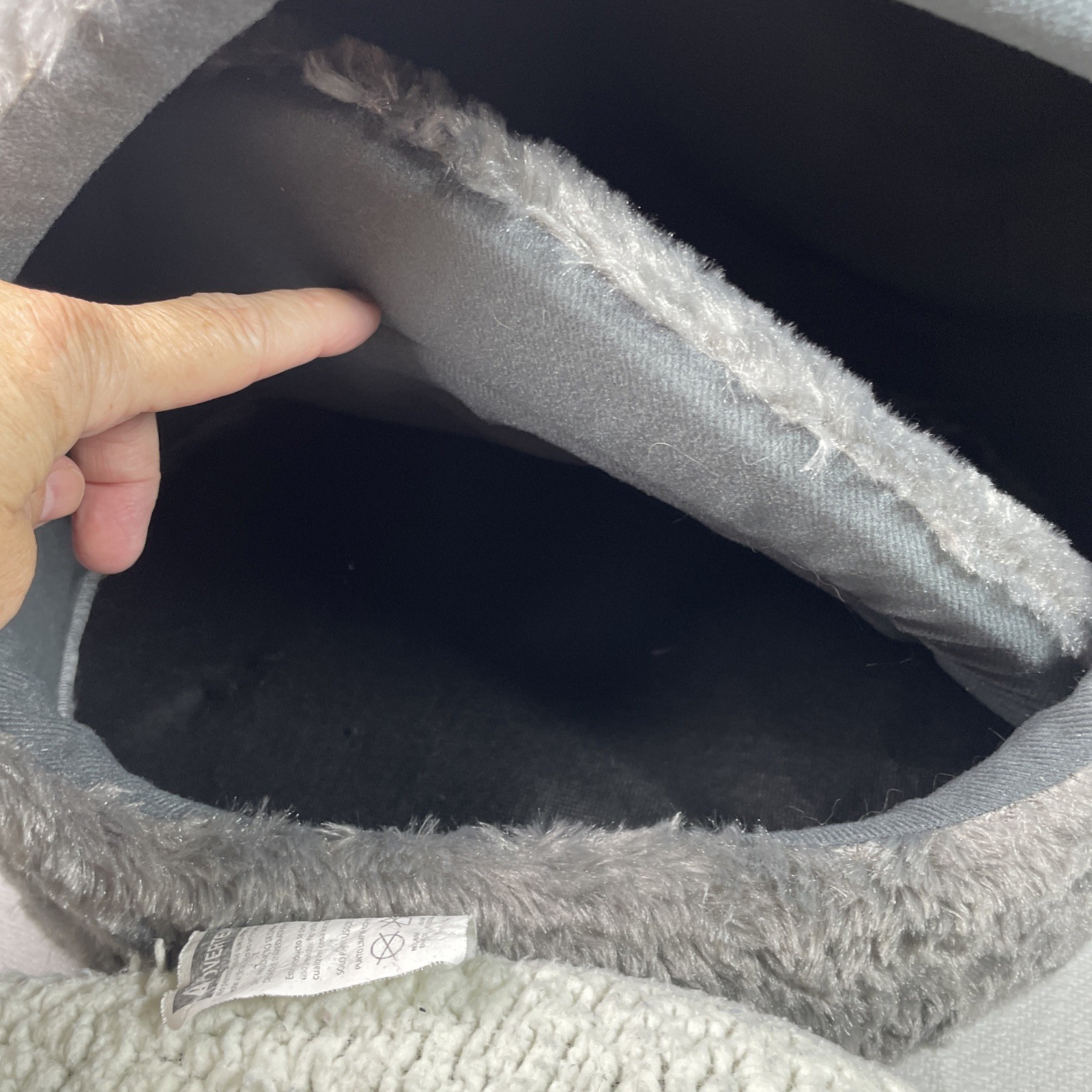 Pre-owned, very clean and in good condition. The foam on the back wants to sink in some next to the ears but it doesn?t affect the sleeping area at all.