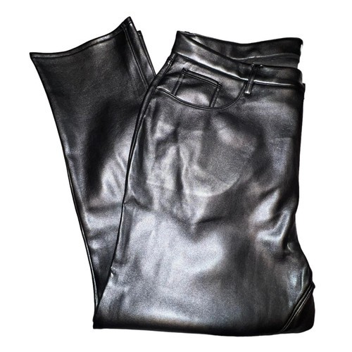 The pants come in a plus size 24 and have a waist size of 45 inches. They are made from faux leather material and have a zip and button closure. The pants are from the Festival, Biker, Motorcycle, Rock, Punk, Grunge, Bohemian, City, and 90s theme collections. Add a touch of edginess to your style with these versatile and fashionable pants.