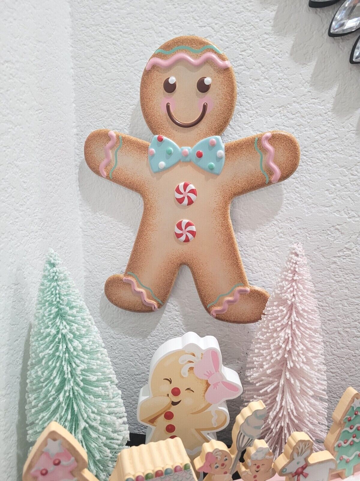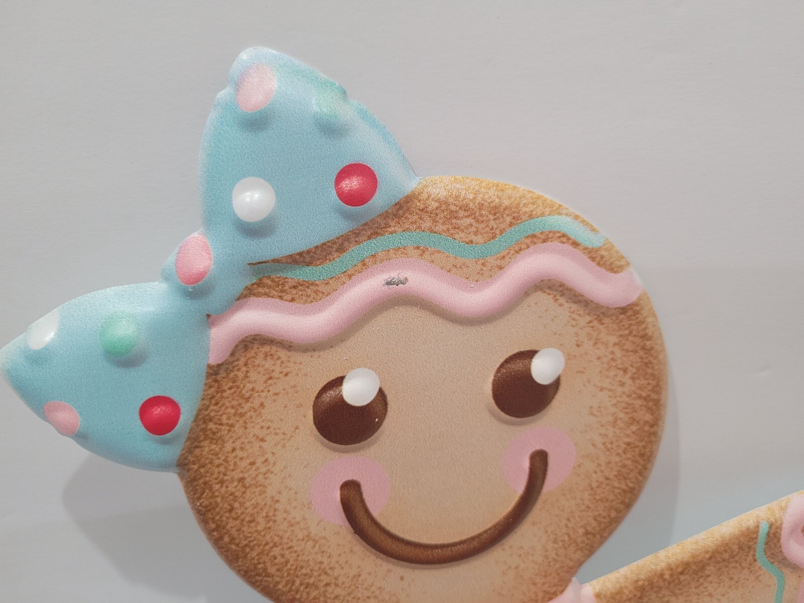 Christmas Pink Gingerbread Girl Ornament Wreath Tabletop Metal Wall Sign 13"x10