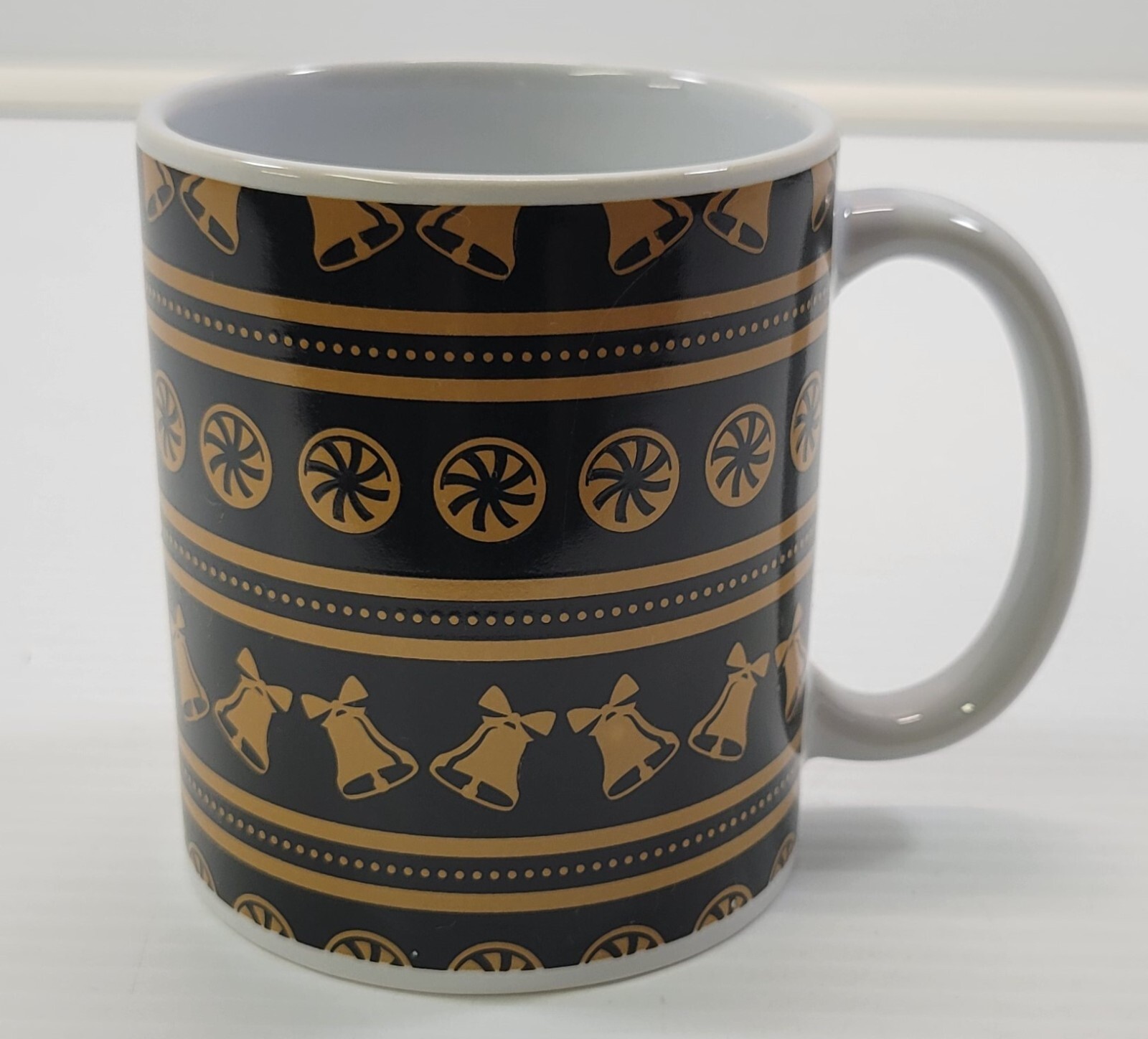C) Christmas Holiday Peppermint Festive Bells Coffee Tea Drinking Mug