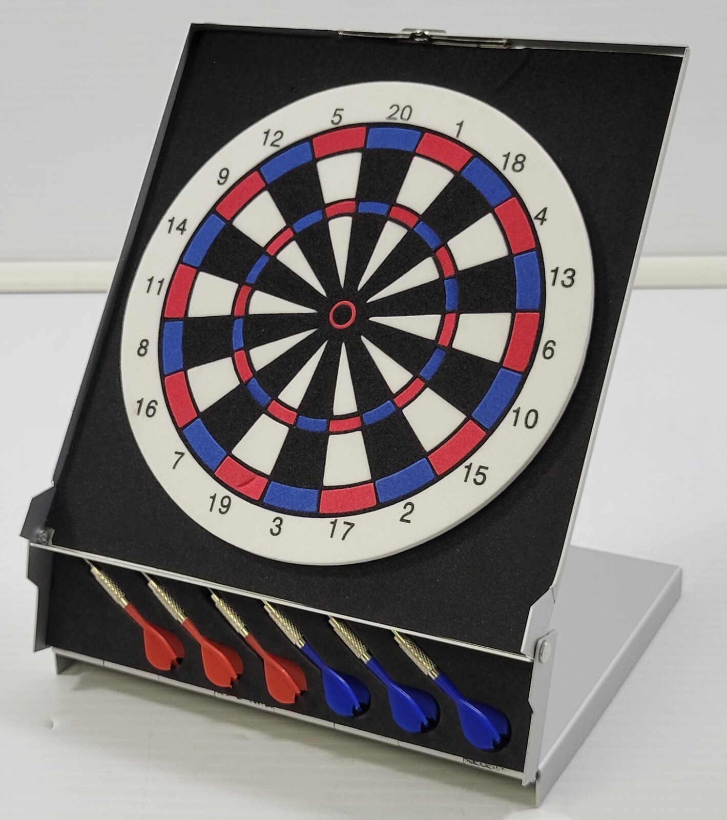 H) Mini Desktop Travel Dart Board Metal Case and 32 similar items