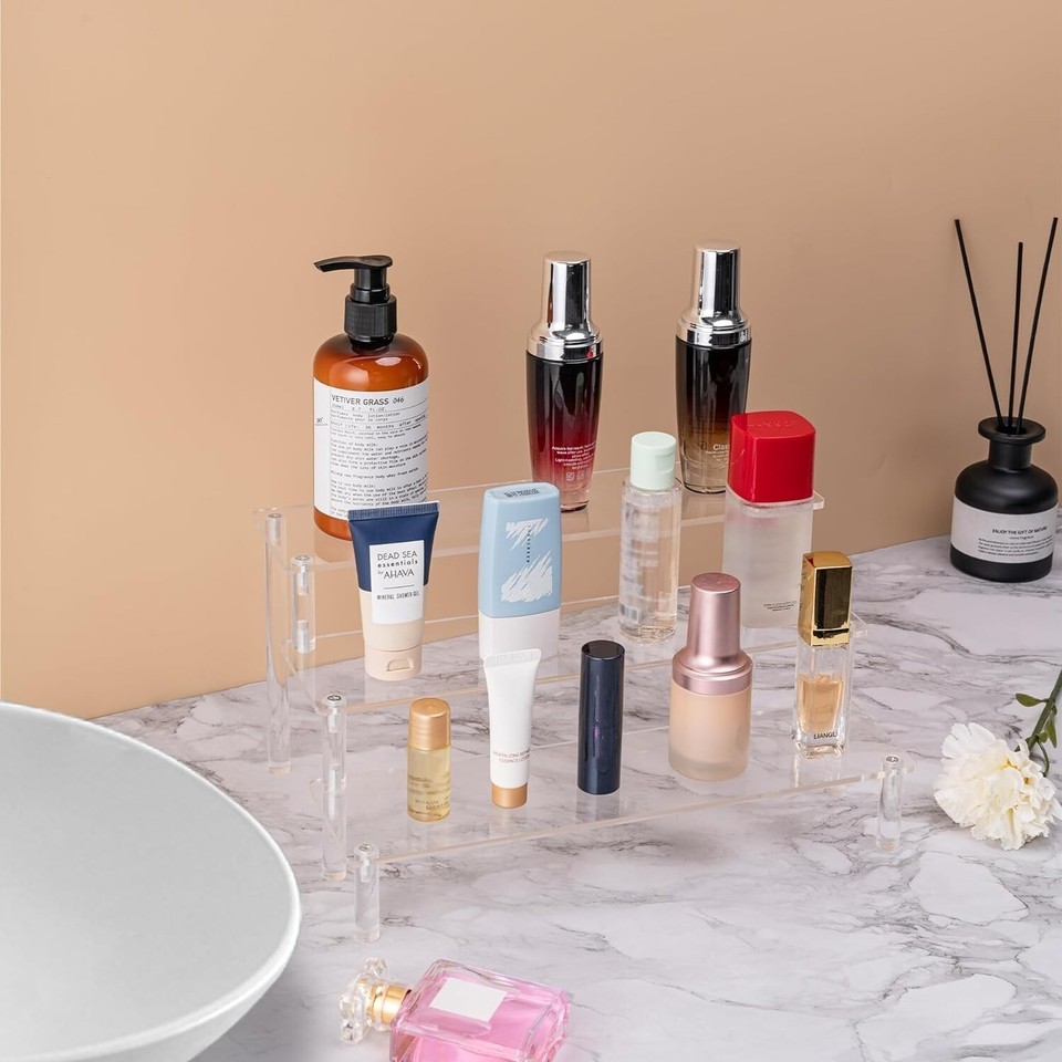 Acrylic Risers Display Stands, 3 Tier Perfume Organizer Display 11.6" L x 3" W