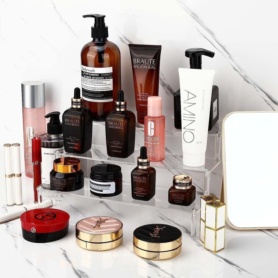 Gonice Clear Acrylic Display Riser 3 Tier Perfume Organizer 11.81 x 8.1 x 5.6 in