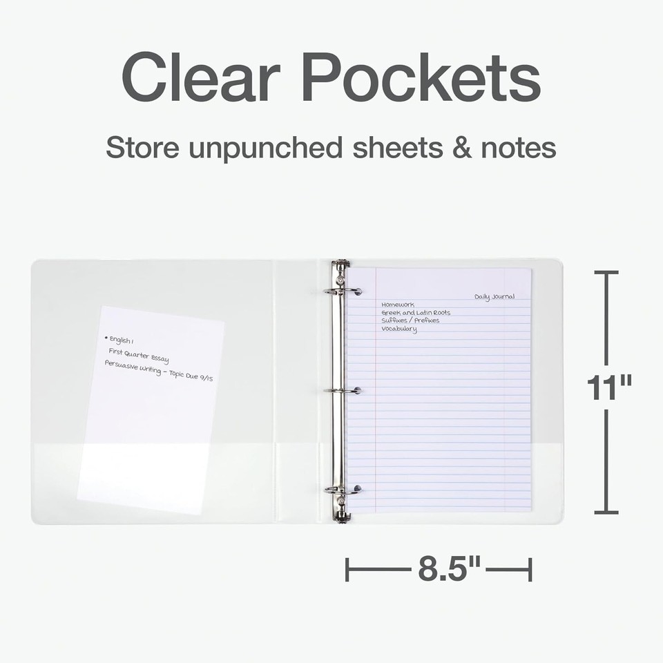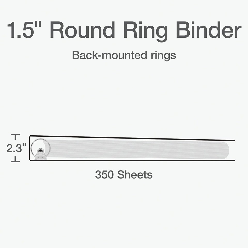 Binder rings easily open and securely close; loading pages or reshuffling notes is a breeze; 1.5" round rings hold up to 350 sheets securely