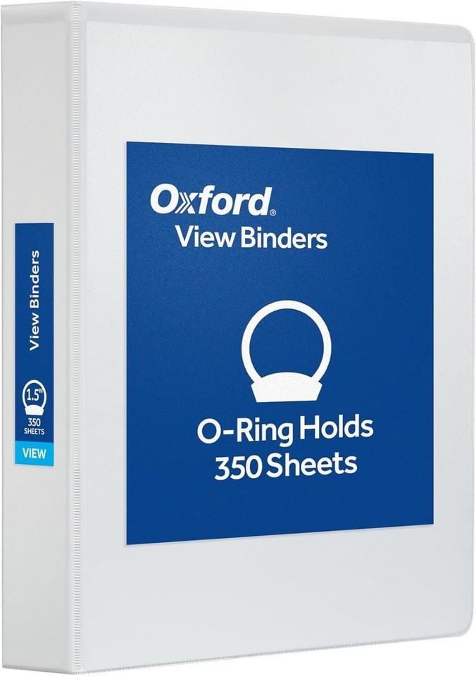 Oxford Ring Binders, 1.5" Round Ring Binders, View Binder 10.75"L x 2"W