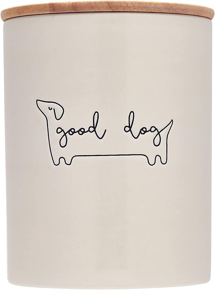 Good Dog Treat Jar, Ceramic and Wood Pet \Canister 4.7 Liters 4.88"L x 4.88"W