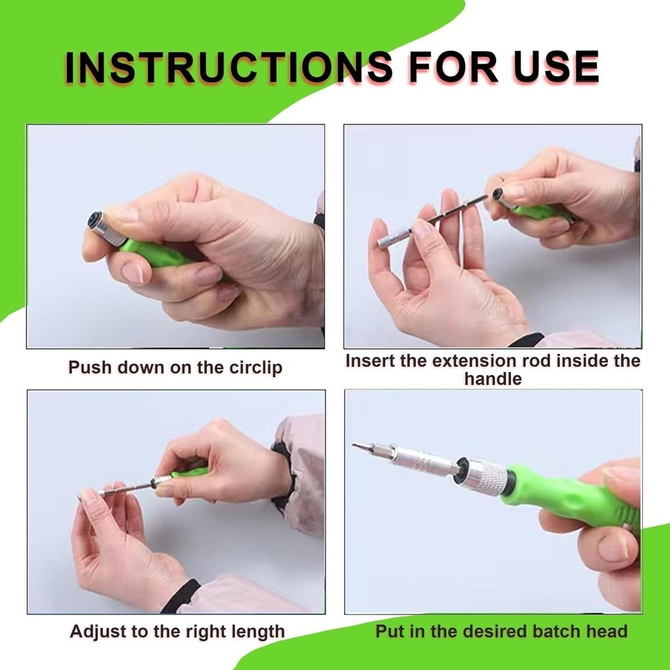 ?????????? ??????: Magnetic screwdriver set, cushion grip handle for comfort and control,with ergonomic TPR handle and button on it, it helps you to use very easily.