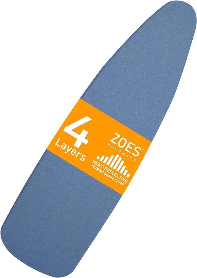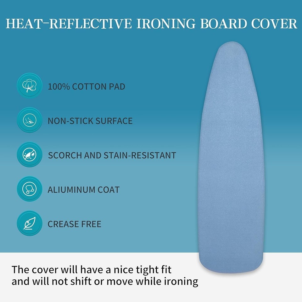 ?MATERIAL?: The ZOES HOMEWARE ironing board cover is designed to speed up your ironing time with its heat reflective technology. Made from 100% breathable cotton, it ensures a wrinkle-free and smooth finish. The pad is constructed with three layers of composite pure cotton interlayer with varying densities, and the pure cotton cover is covered with thousands of aluminum foil dots. This design can increase your ironing efficiency by 30-50% by reflecting heat.