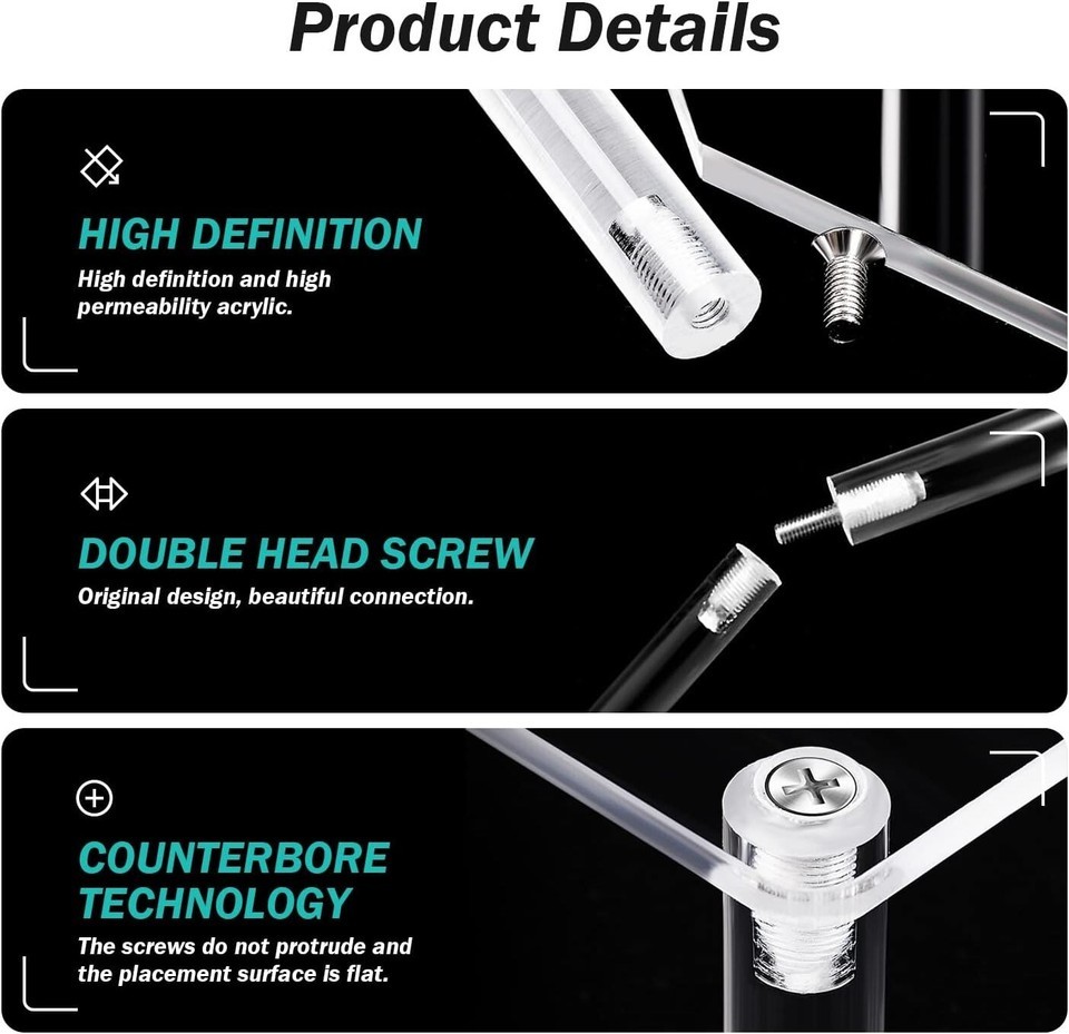 ?Sturdy Clear?Made of high quality acrylic material, it is Strong and durable Can bear up to 2 pounds, perfect for displaying toy figures in cabinets, celebrating party desserts, and storing cosmetics and spice jars such as perfume, Nail polish.