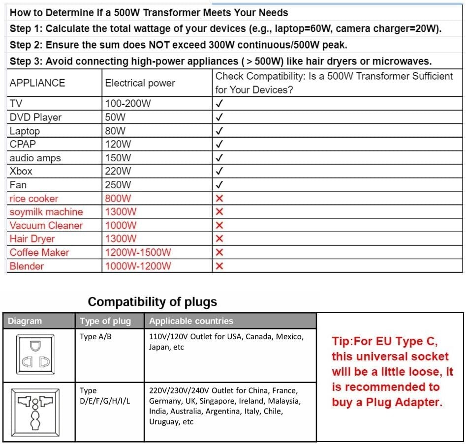 Compact 500W Voltage Converter Transformer - 300W Continuous for Global Devices