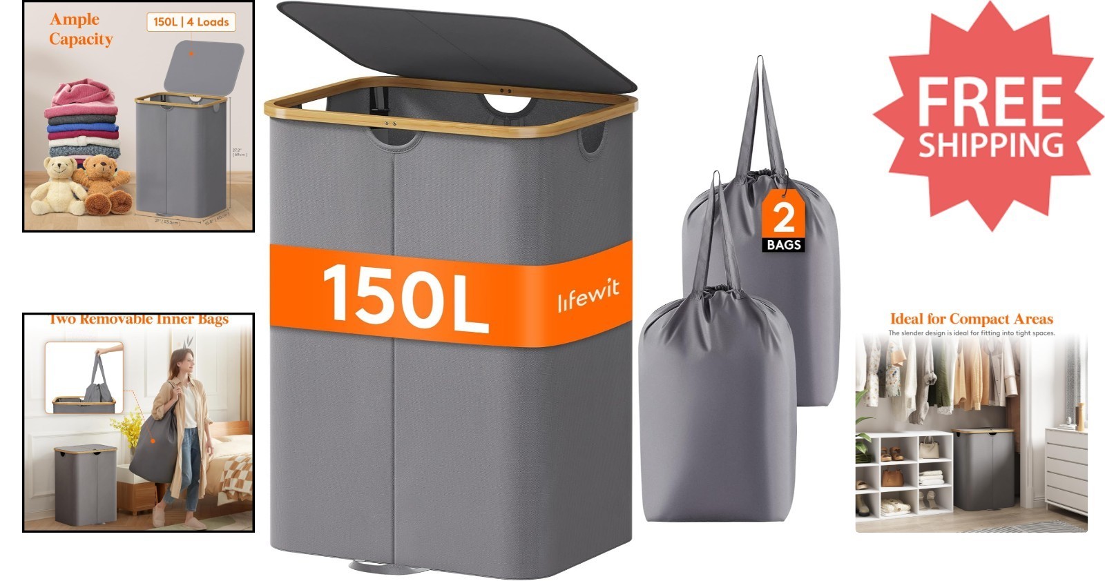 Aesthetic 150L Laundry Basket with Bamboo Handles - Perfect for Dorms