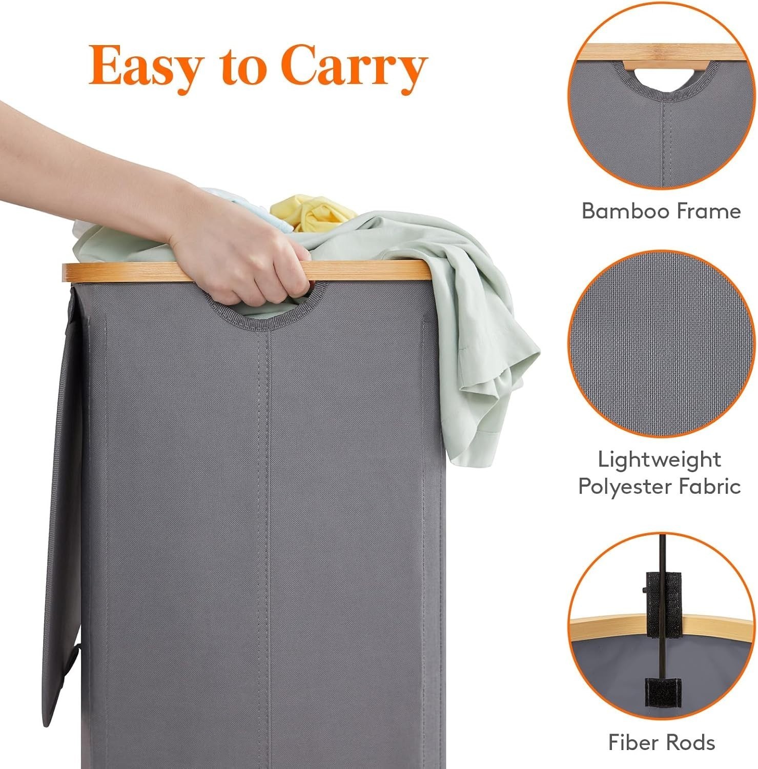 The lid design not only conceals your laundry but also helps block odors, keeping your space fresh and clutter-free. Featuring removable polyester fabric bags with snap buttons and built-in handles, loading and transporting laundry is easier than ever. When not in use, the collapsible design allows you to flatten the basket by releasing support rods, perfect for compact storage.