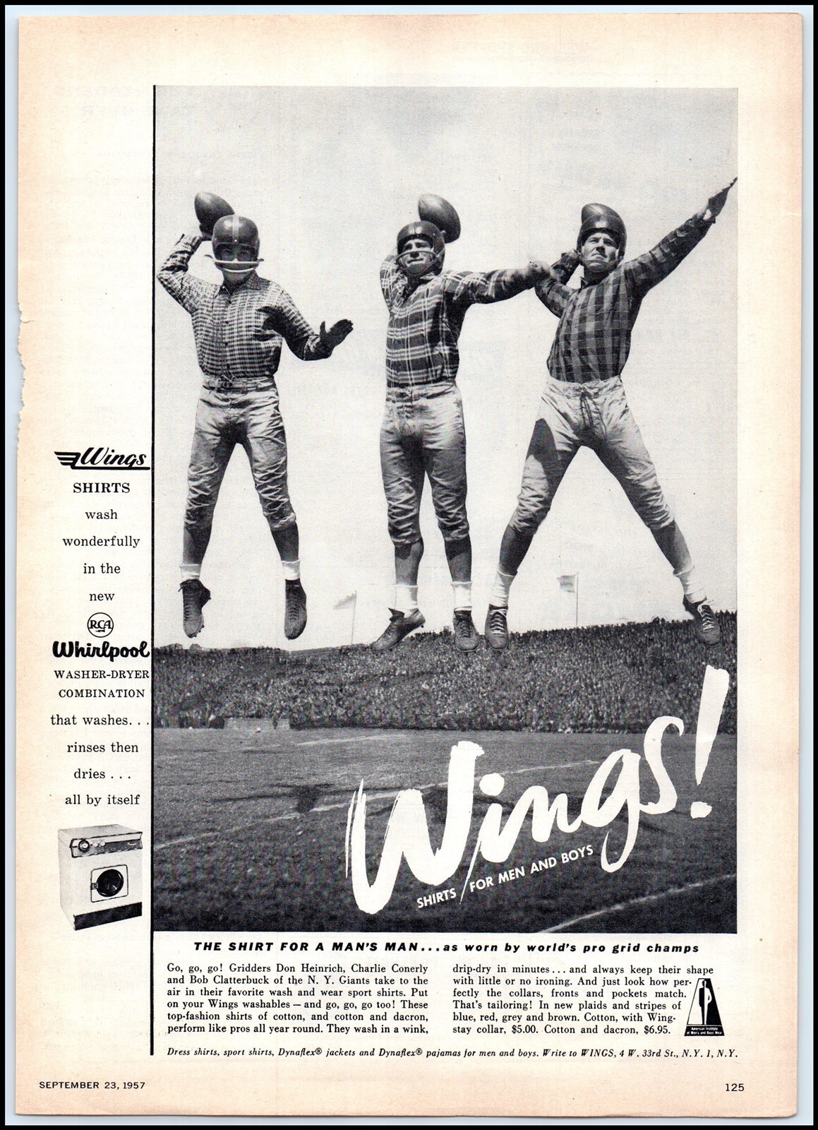 1950s Wings Shirts For Men PRINT AD Football Don Heinrich, Charlie Conerly BX2