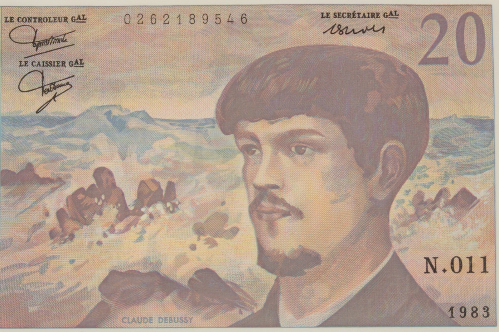 1983 France 20 Francs "Claude Debussy" Note // XF-AU Condition // Pick#151a.4