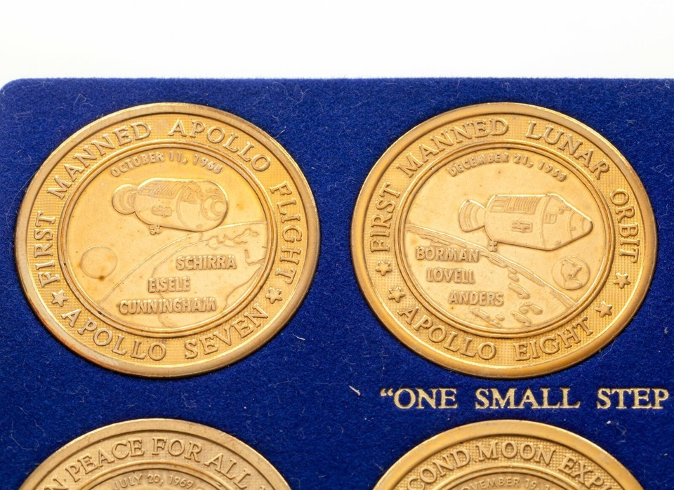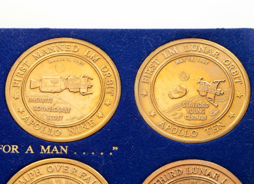 NASA -Medaille setzt. Acht Satze mit jeweils acht Medaillen, mit Ausnahme eines Satzes nur sieben