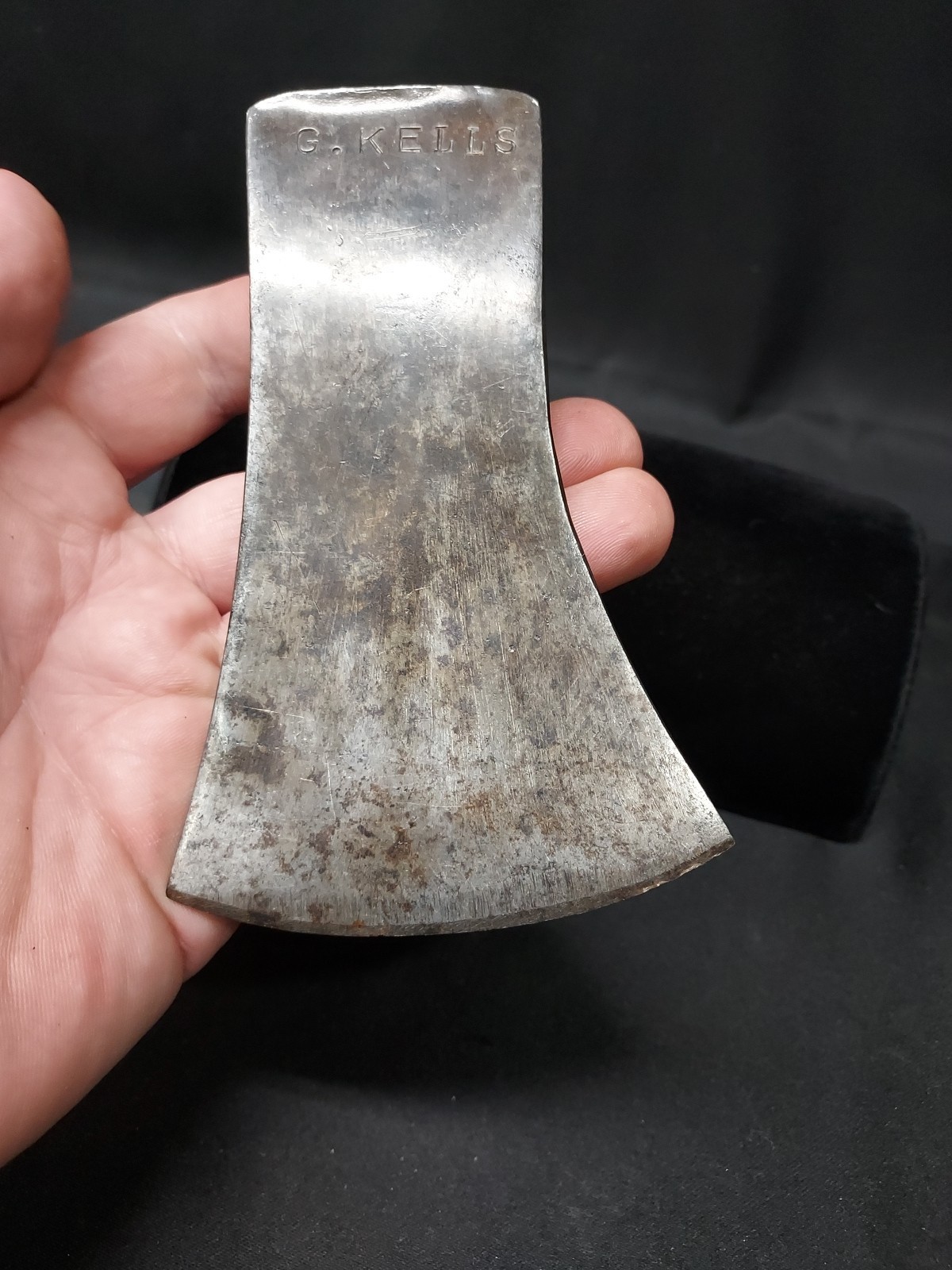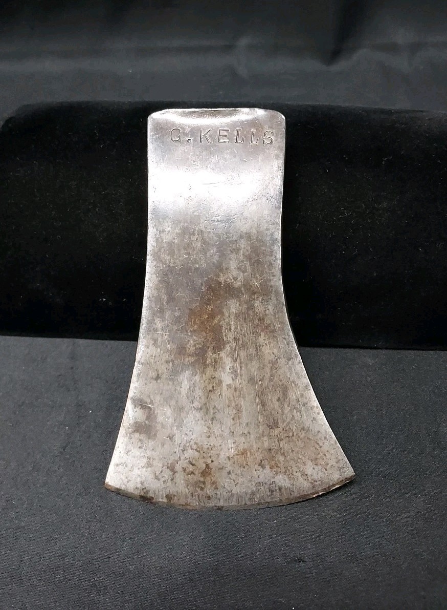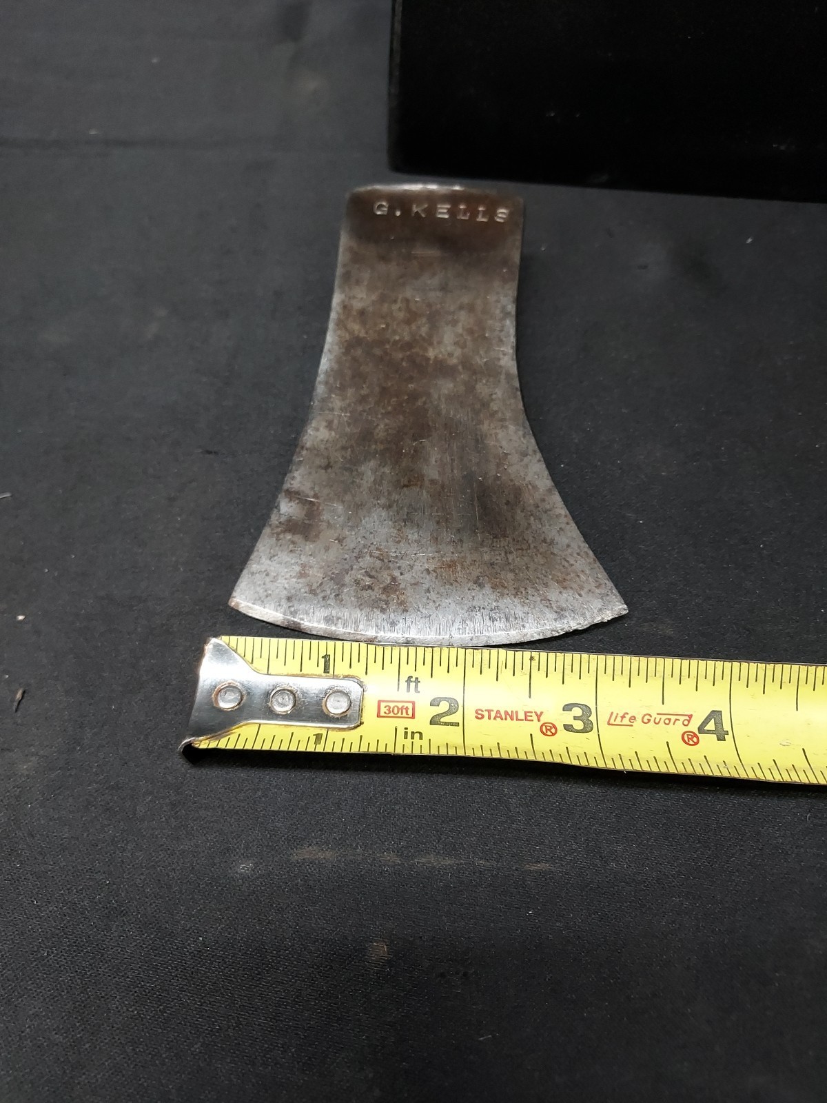 Old 1 lb 7 oz Single Bit Tomahawk Style Axe Head Marked G. Kells, Owner's Stamp?