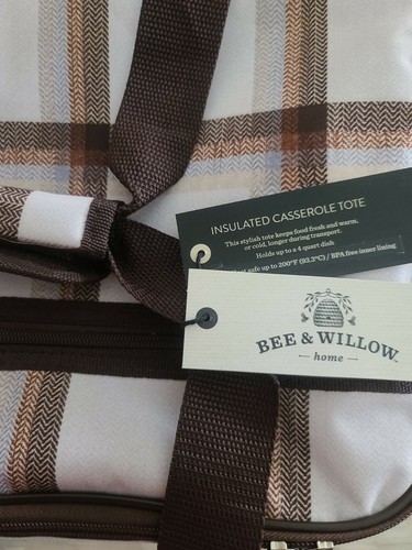 Bee & Willow Home ~ Plaid Design ~ Insulated Tote ~ Holds Up to 4 Qt. Dish