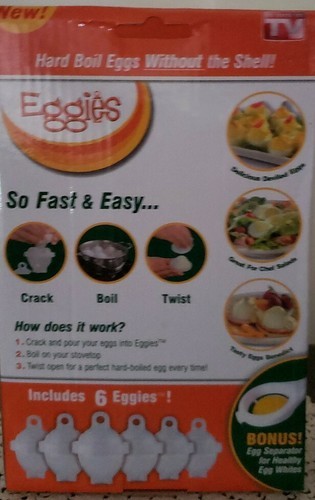 Six (6) Eggies ~ Hard Boil Eggs Without The Shell ~ Crack ~ Boil ~ Twist