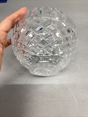WATERFORD CRYSTAL BEAUTIFUL ROUND ROSE BOWL VASE. In good, used condition. Measures 5.75?Hx6?D in the center. The top opening is 2.25?D