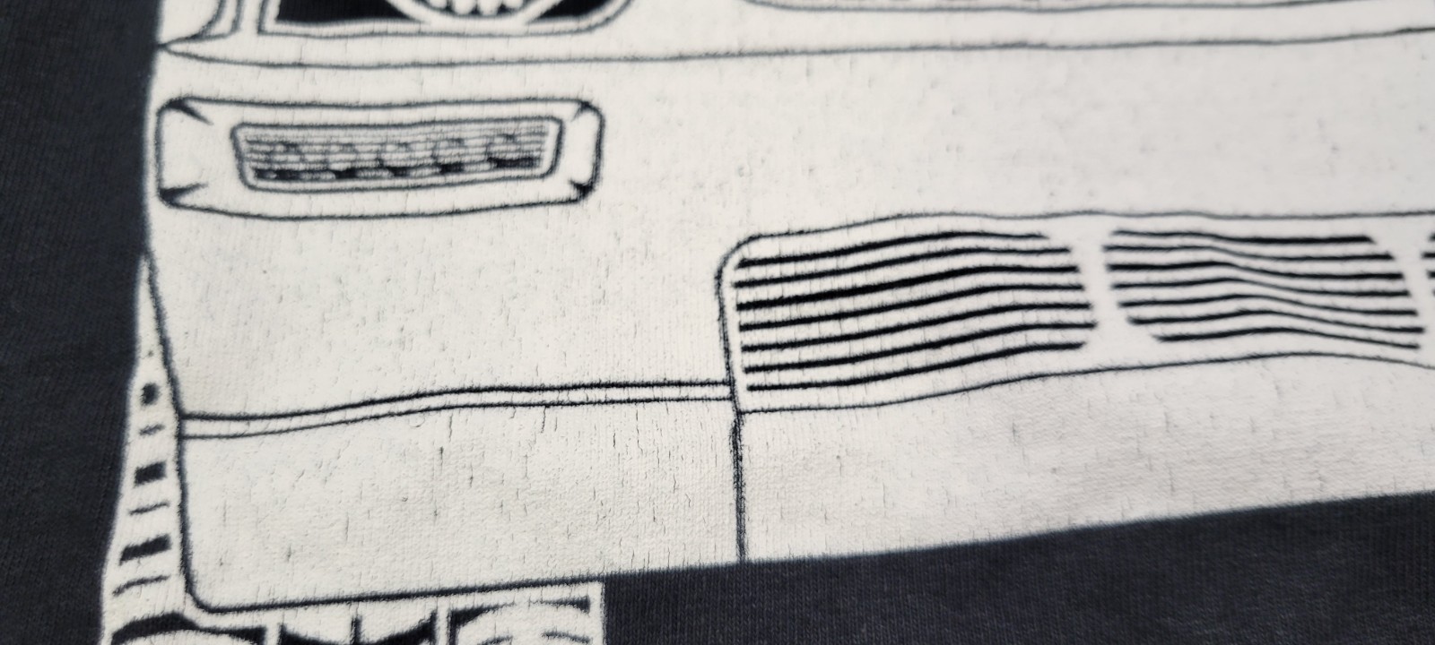 Shirt is in overall good used condition. The inner tag has been cut and there is some slight cracking to the graphic due to wash and wear.