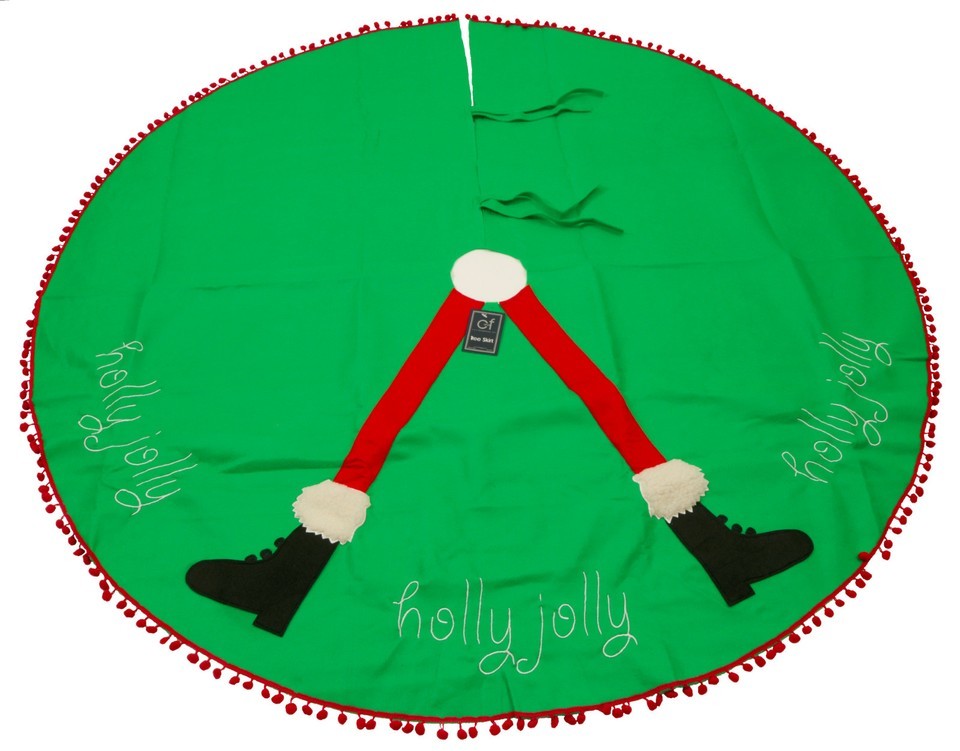 Tree Skirt Holly Jolly Santa Legs Christmas 54in Across Round Green Felt