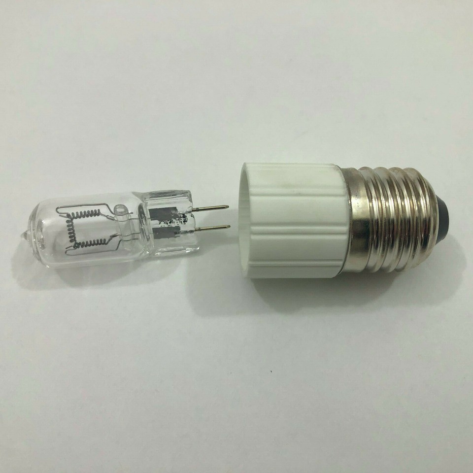 2 Pin type quartz halogen bulb and an adapter to use on ceramic E-27 lamp socket
