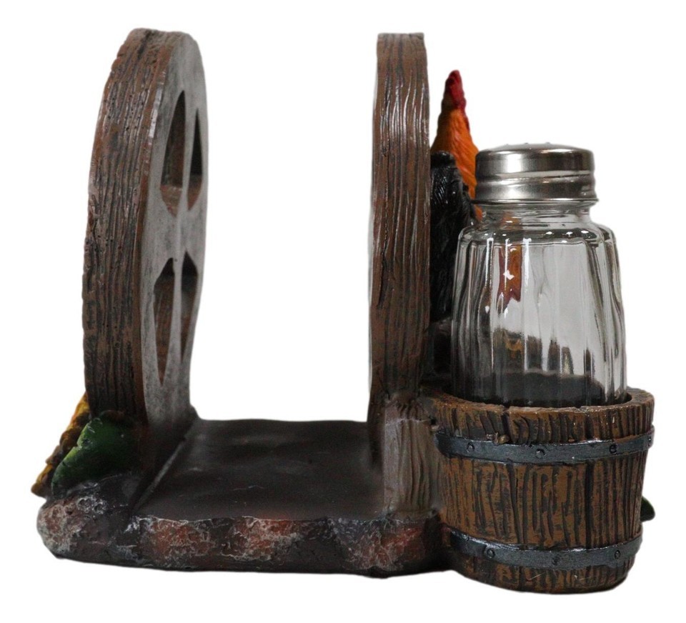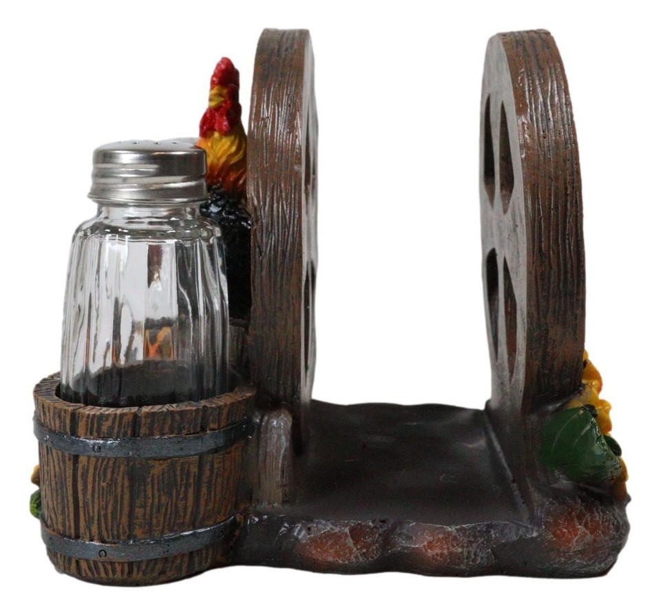 Ebros Rooster Chicken By Farm Barrels Wagon Wheels Napkin Salt Pepper Shakers Holder