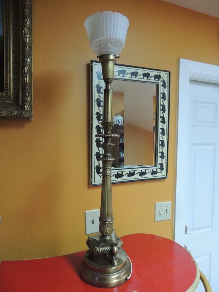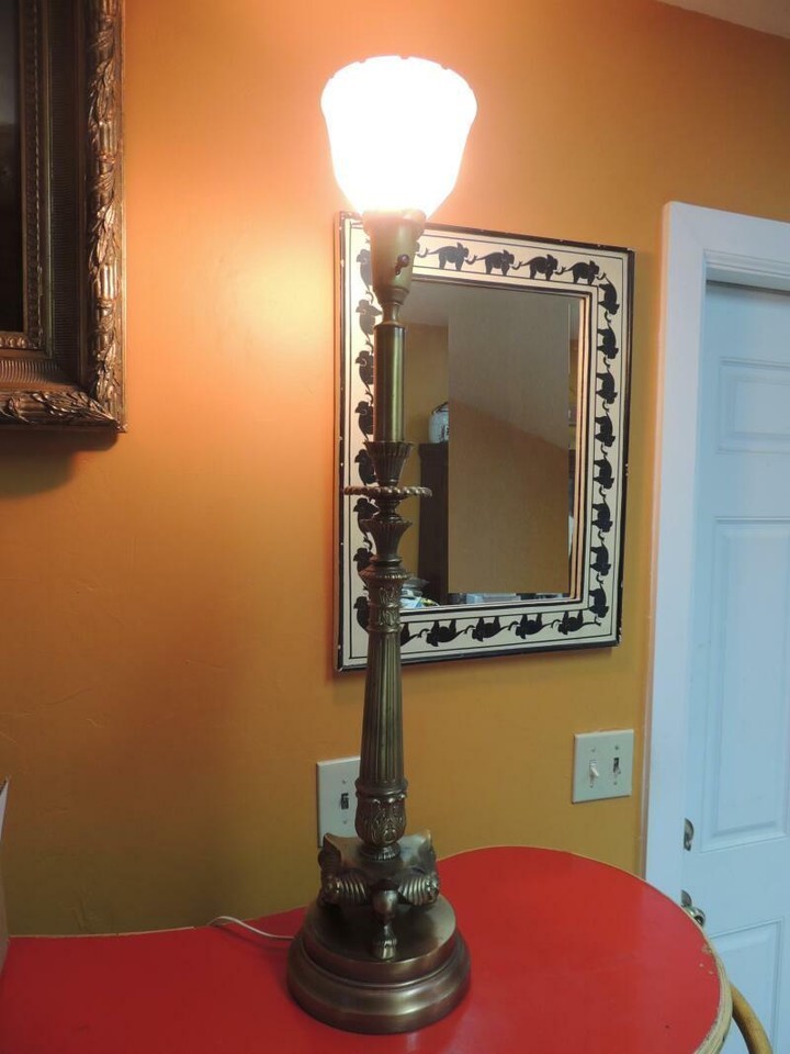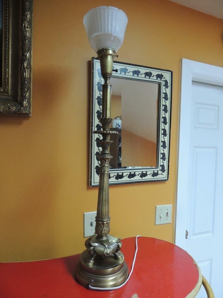 Vintage Brass / Bronze 35" Table Lamp Diffuser Torchiere Shade Regency Rembrandt
