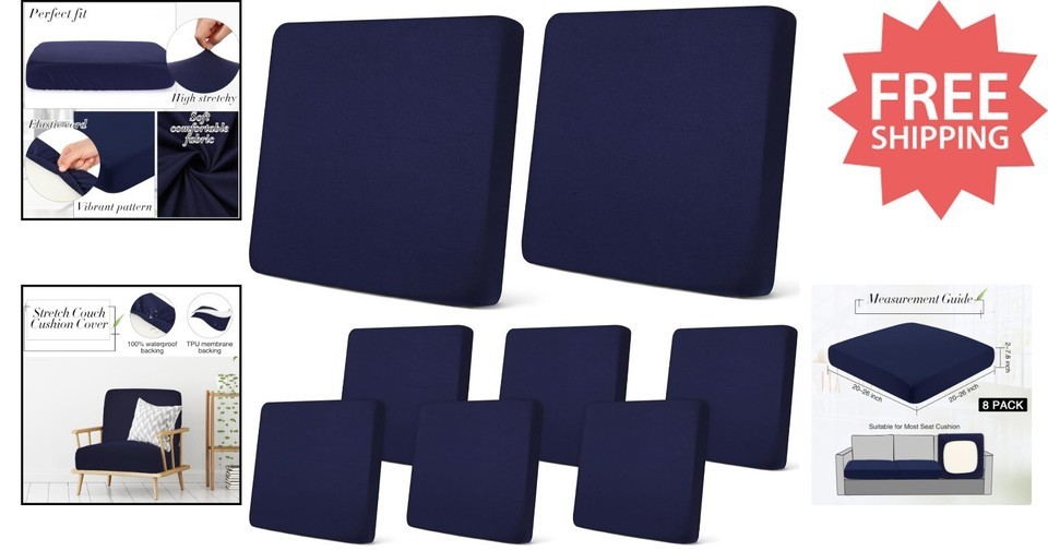 Versatile 8-Pcs Navy Stretch Cushion Covers and similar items