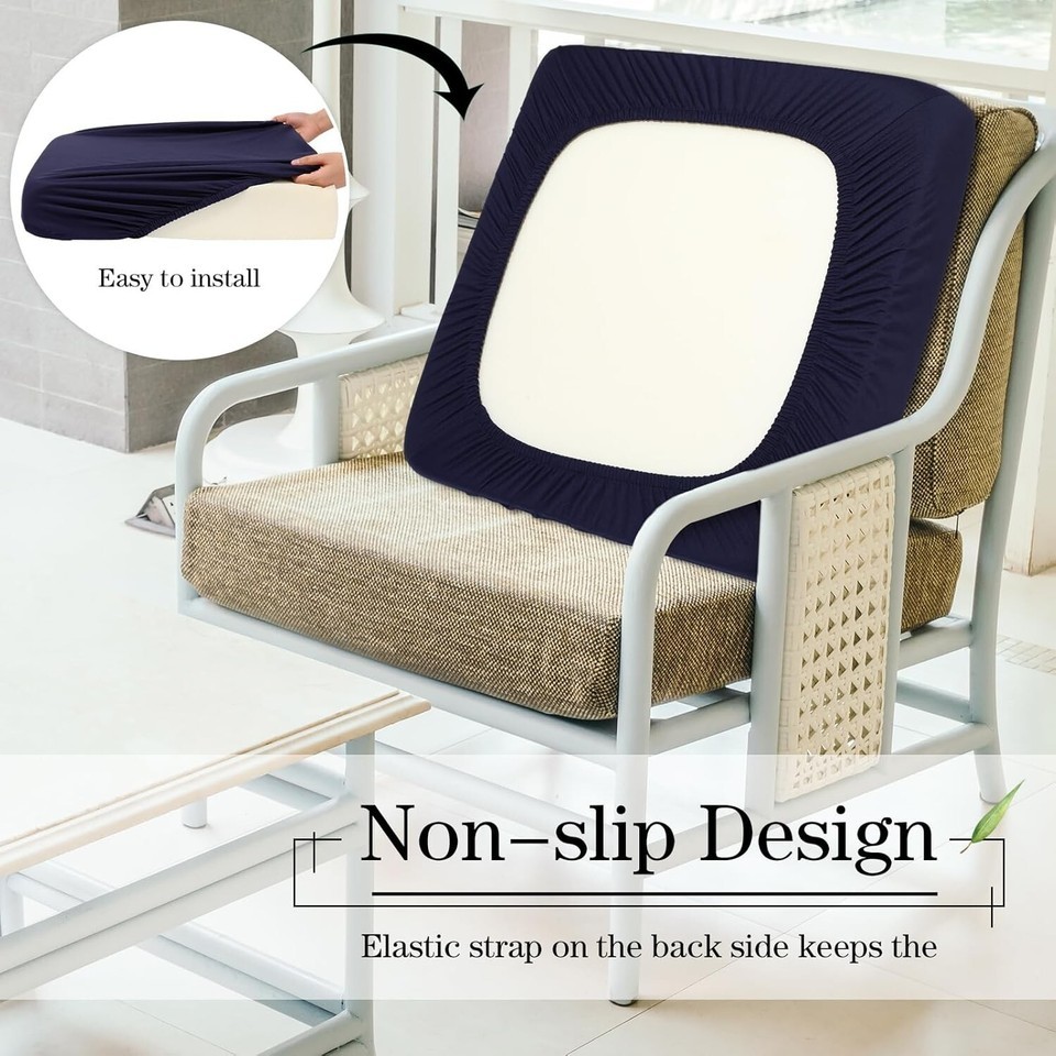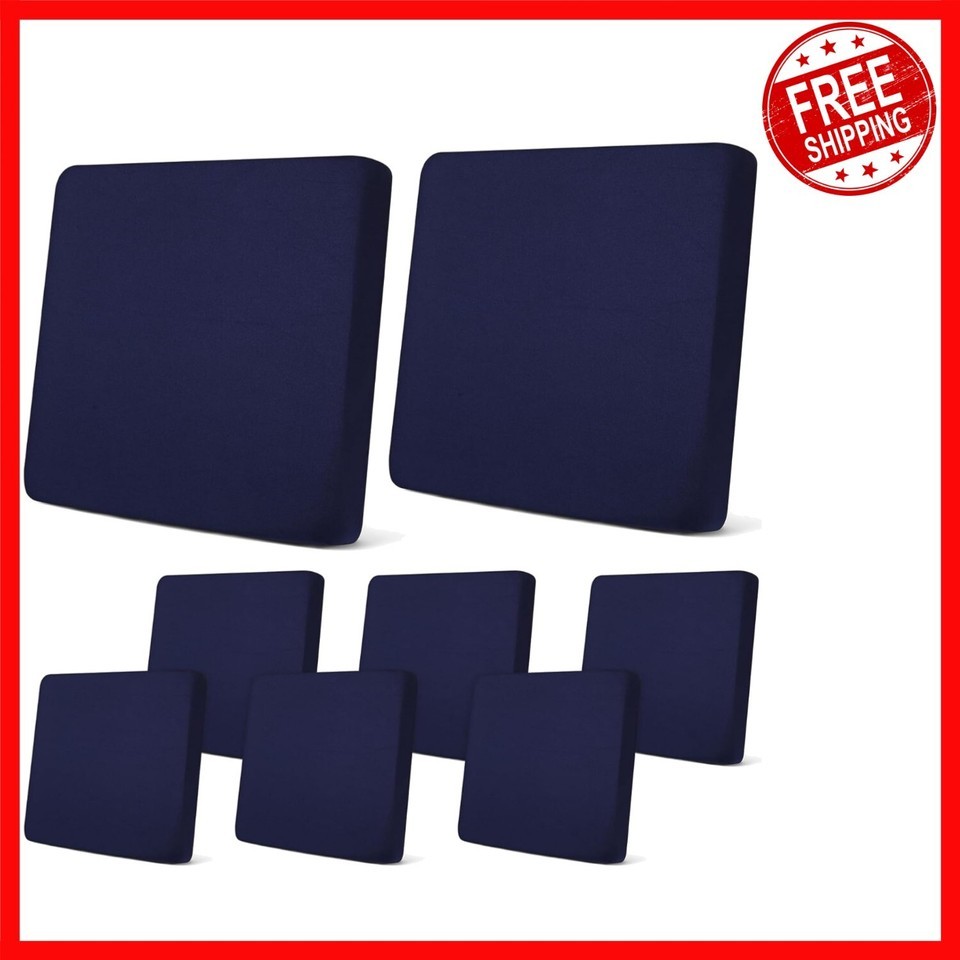 Versatile 8-Pcs Navy Stretch Cushion Covers for Outdoor Furniture - Easy Clean