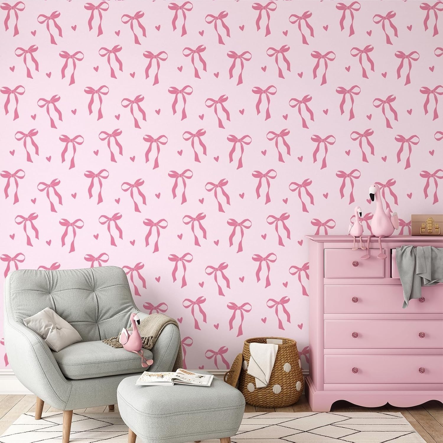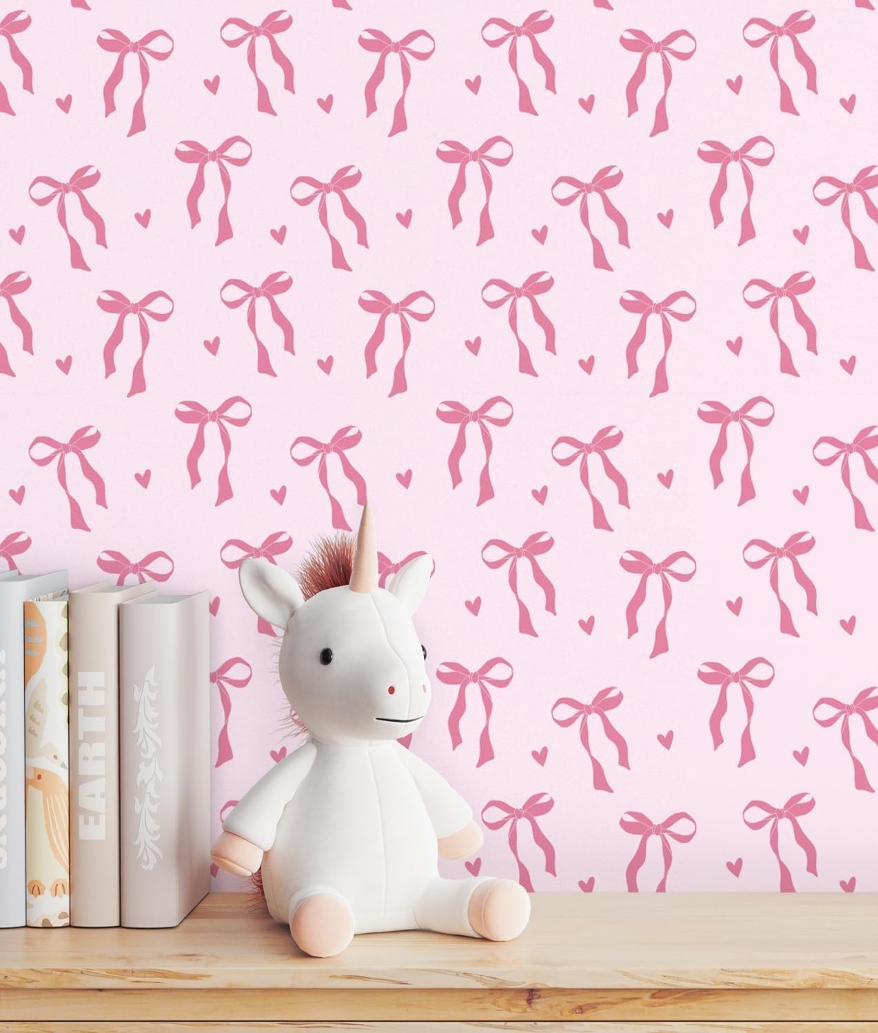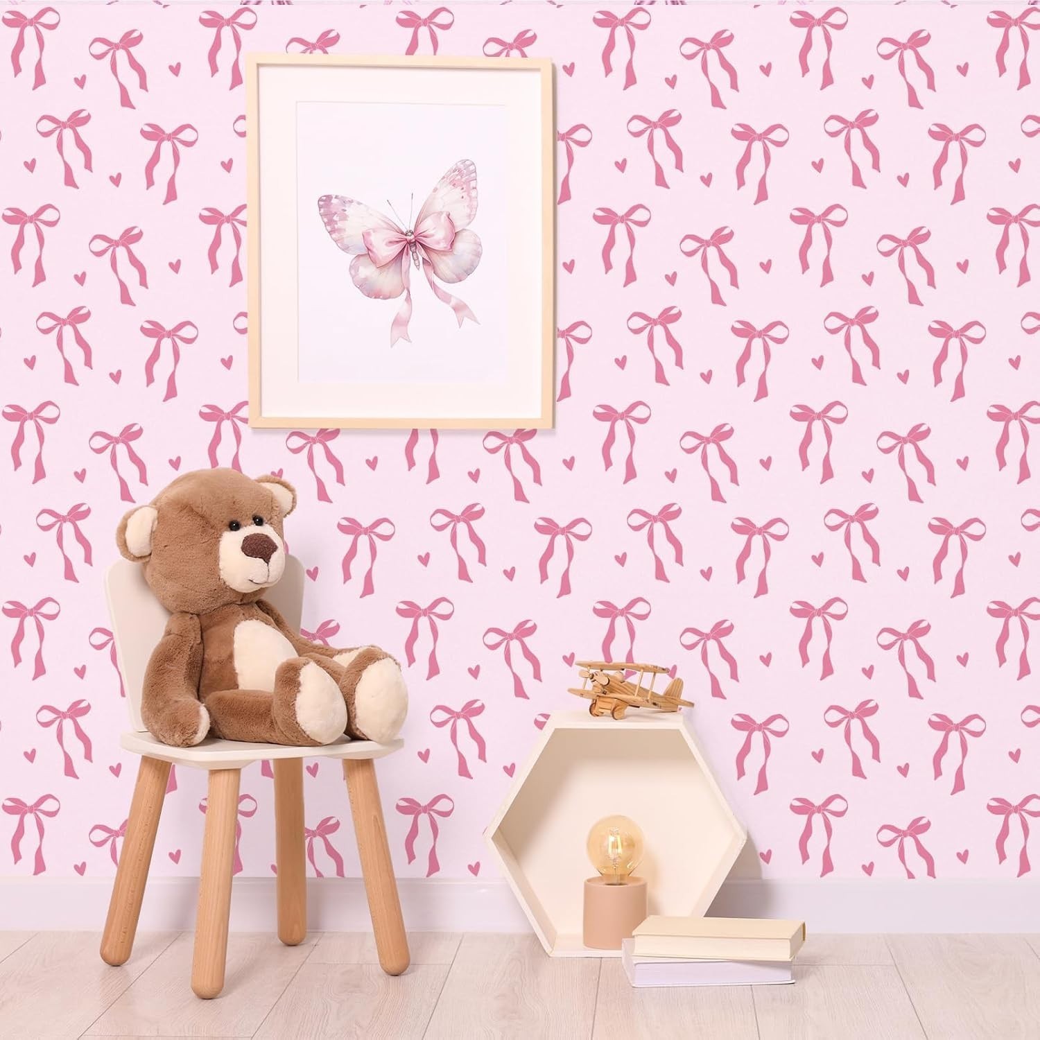 Peel and Stick Wallpaper, 17.3 Inch x 6.5 Feet, Bow and Love Design Self Adhe