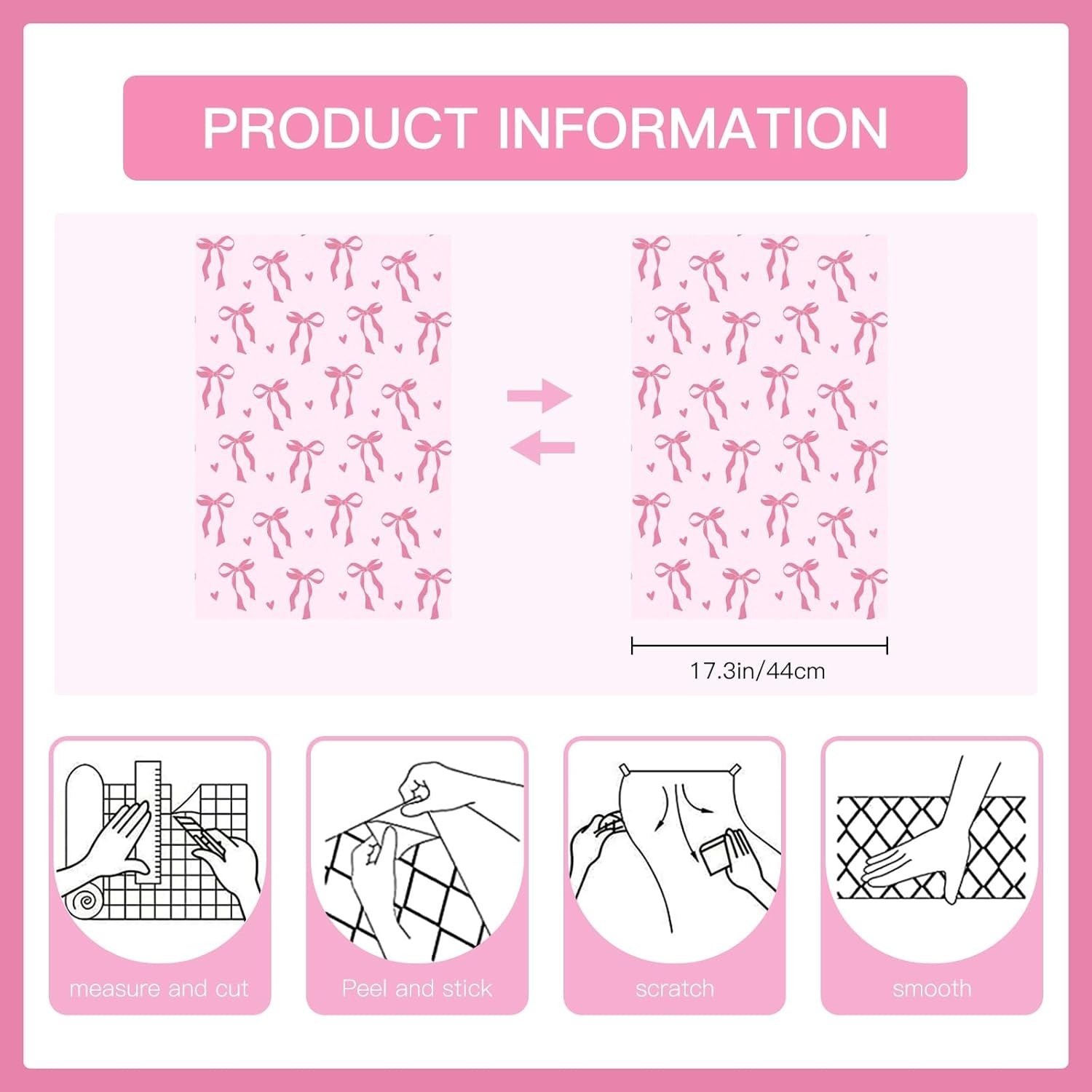 The bow and love pattern making the contact paper visually appealing. This wallpaper complements most home decors and will add warmth and charm to your home