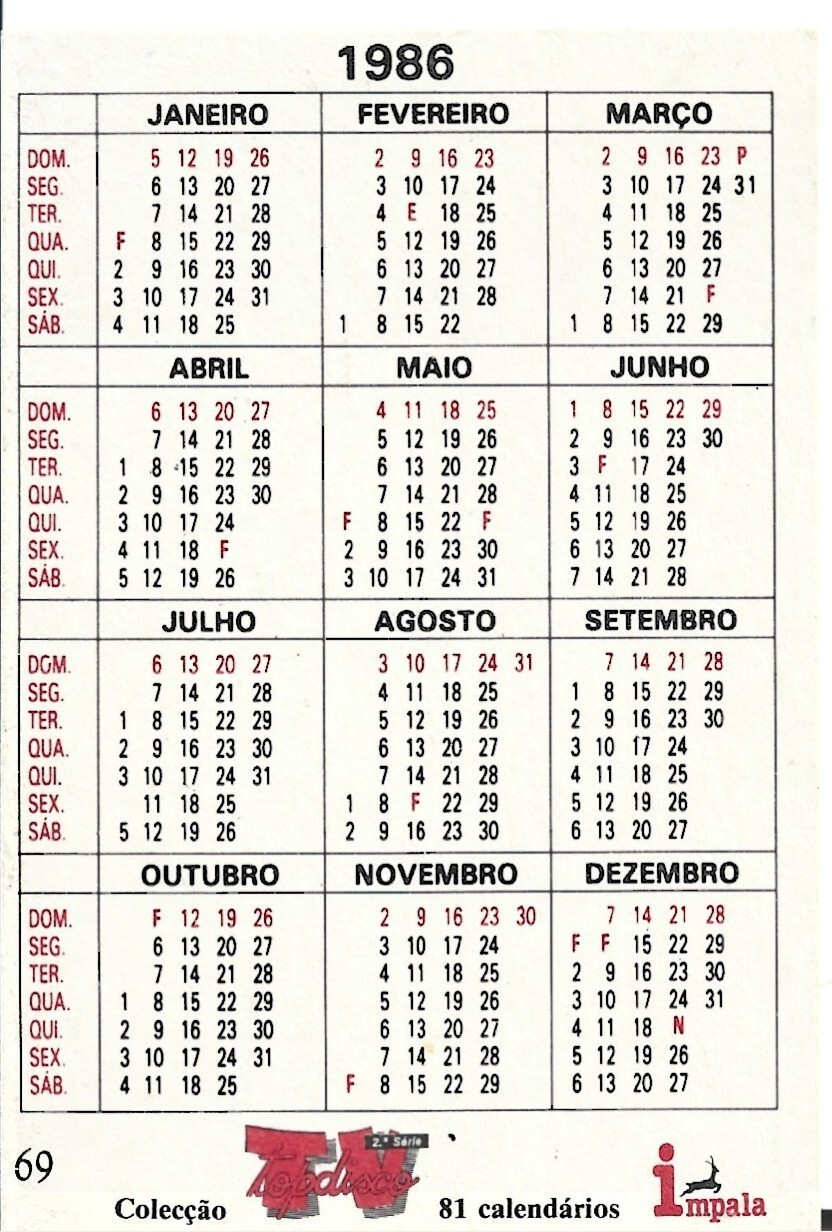 ⭕VTG card pocket calendar 1986 PRETENDERS Portugal group music singer