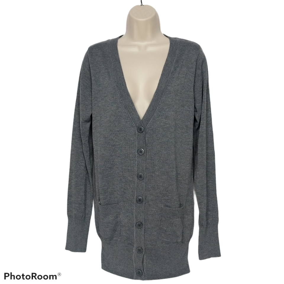 NWT Fancy Stitch Womens Cardigan Knit Sweater Size Large Gray Pockets