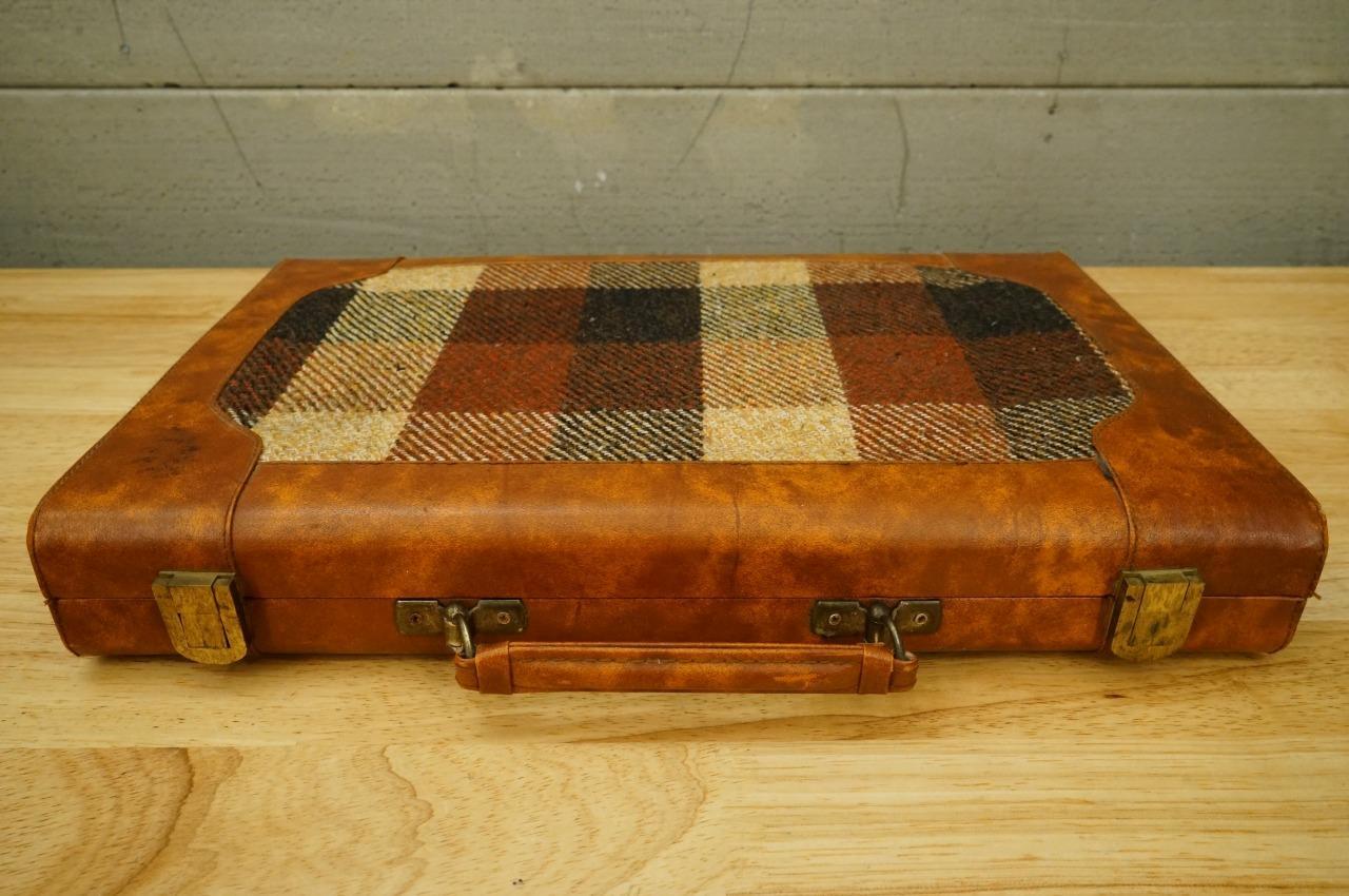 Vintage Toy Mid Century Modern BACKGAMMON Board Game Plaid Fabric Inlaid Case